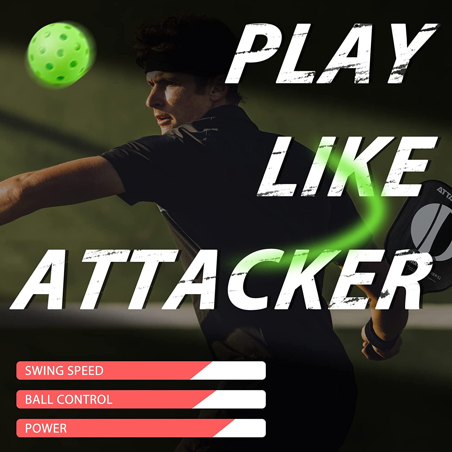 - šćMASSIVE SEWWT SPOTć Weāve paired a massive sweet spot together with a thicker core. Our ATTACKER S1 pickleball set absorbs the impact to give players a softer feel while still delivering the power you need on the court. Pickleball Rackets Dimensions: 15.95" L x 7.85" W. 7.93oz light-medium weight.