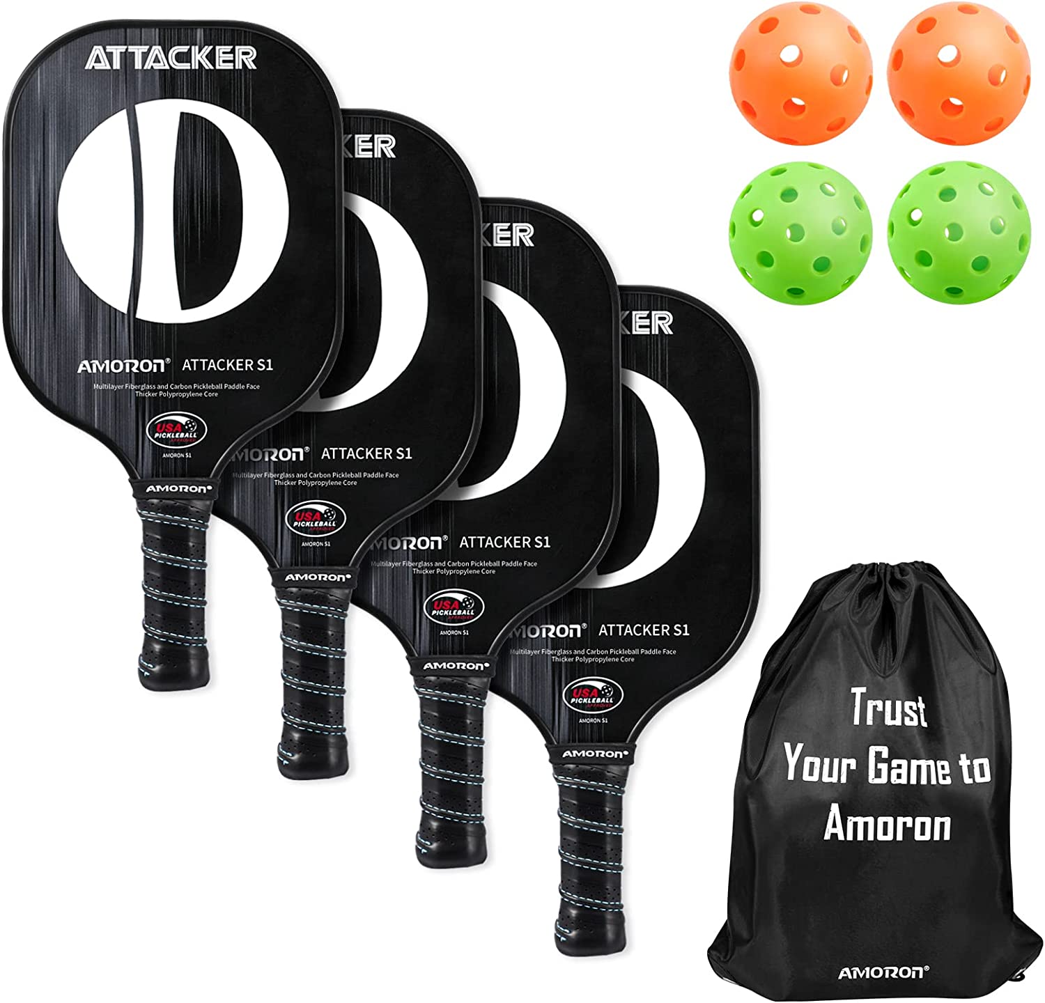AMORON Pickleball Paddles Set of 2 USAPA Approved, Composite Graphite Carbon and Fiberglass Face, 25% Thicker Polypropylene Core, Lightweight Best Pickleball Rackets &4 Indoor Outdoor Balls & Bag