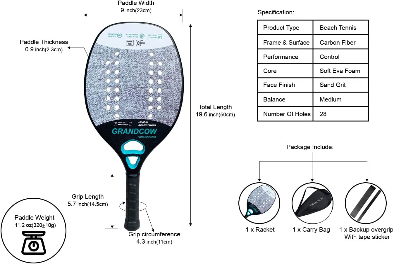 Paddle Thickness: 0.9 inch(2.3cm)