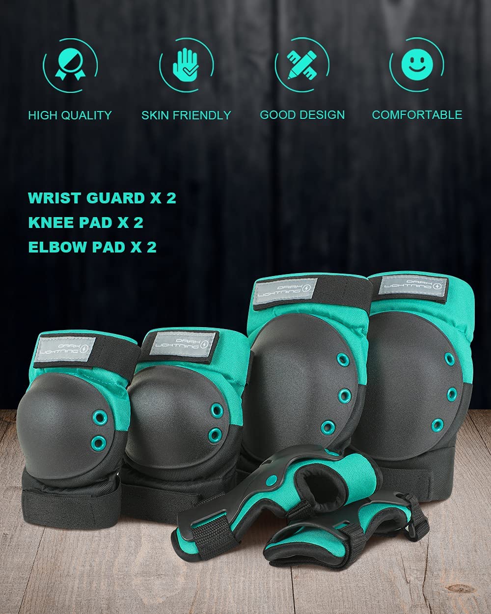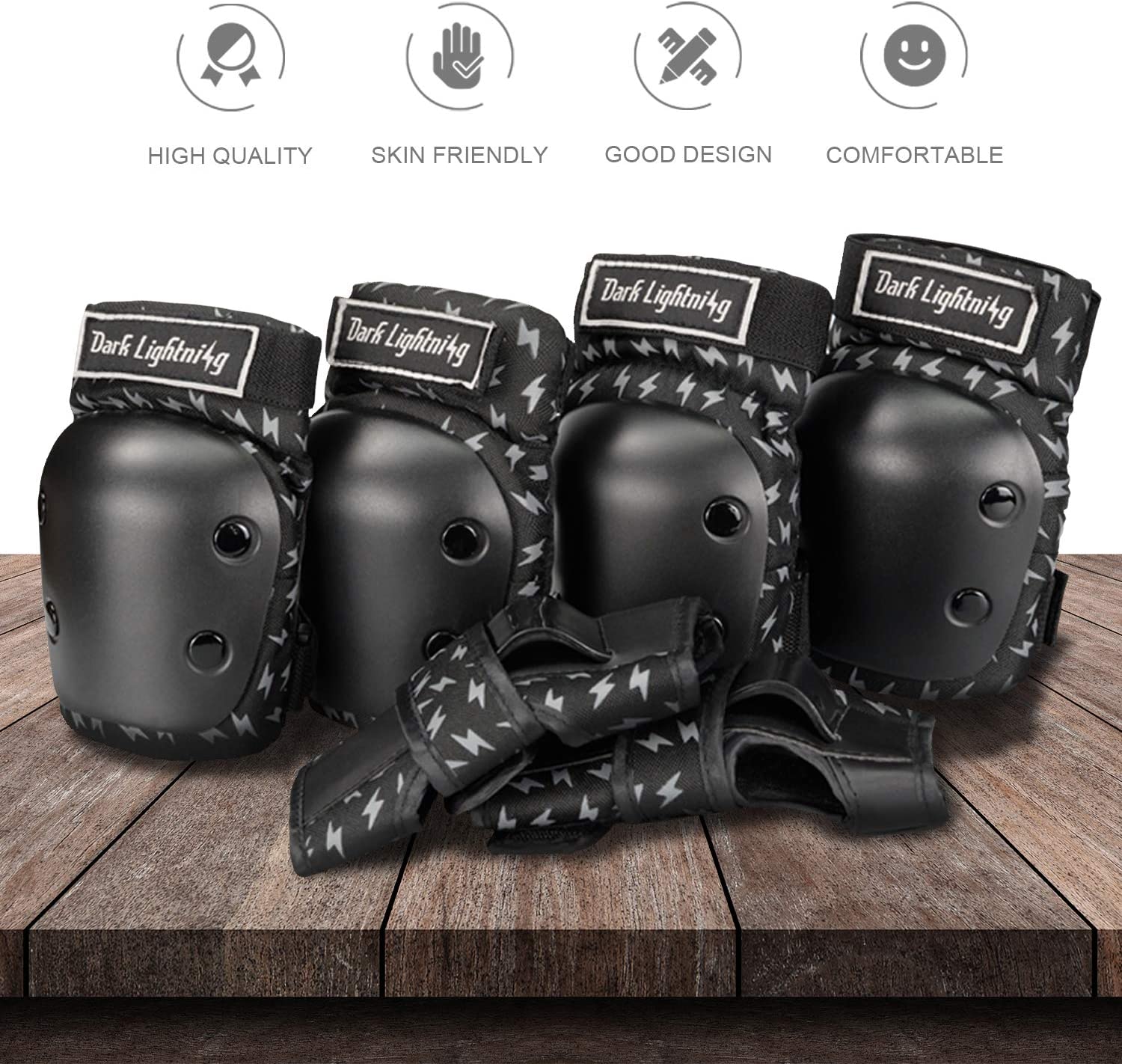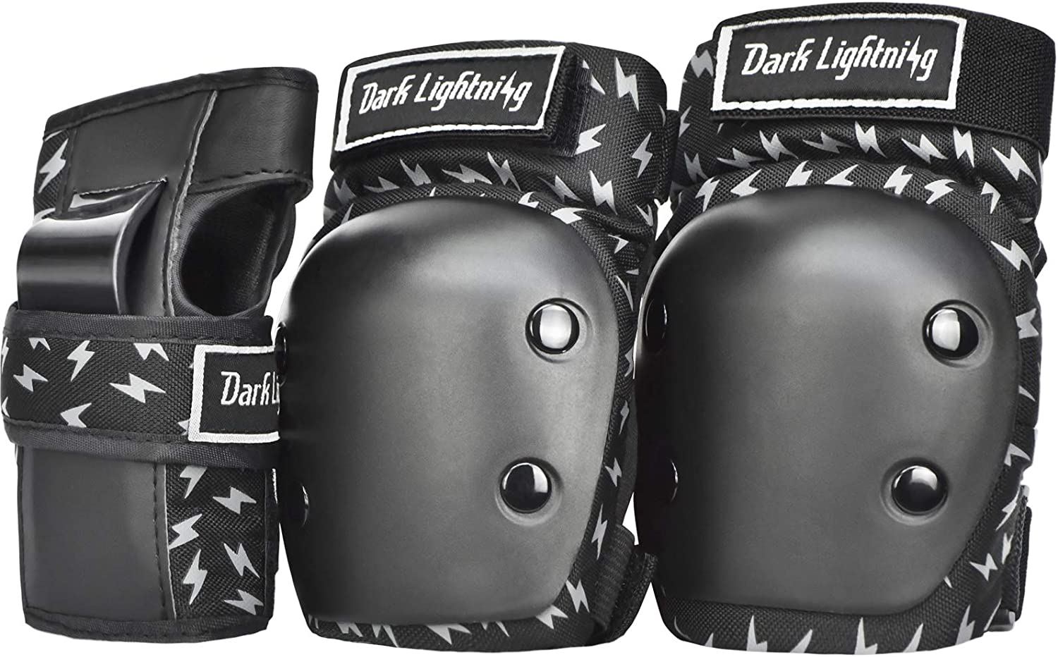 Dark Lightning Adult/Youth/Junior Knee Pads Elbow Pads Wrist Guards 3 in 1 Protective Gear