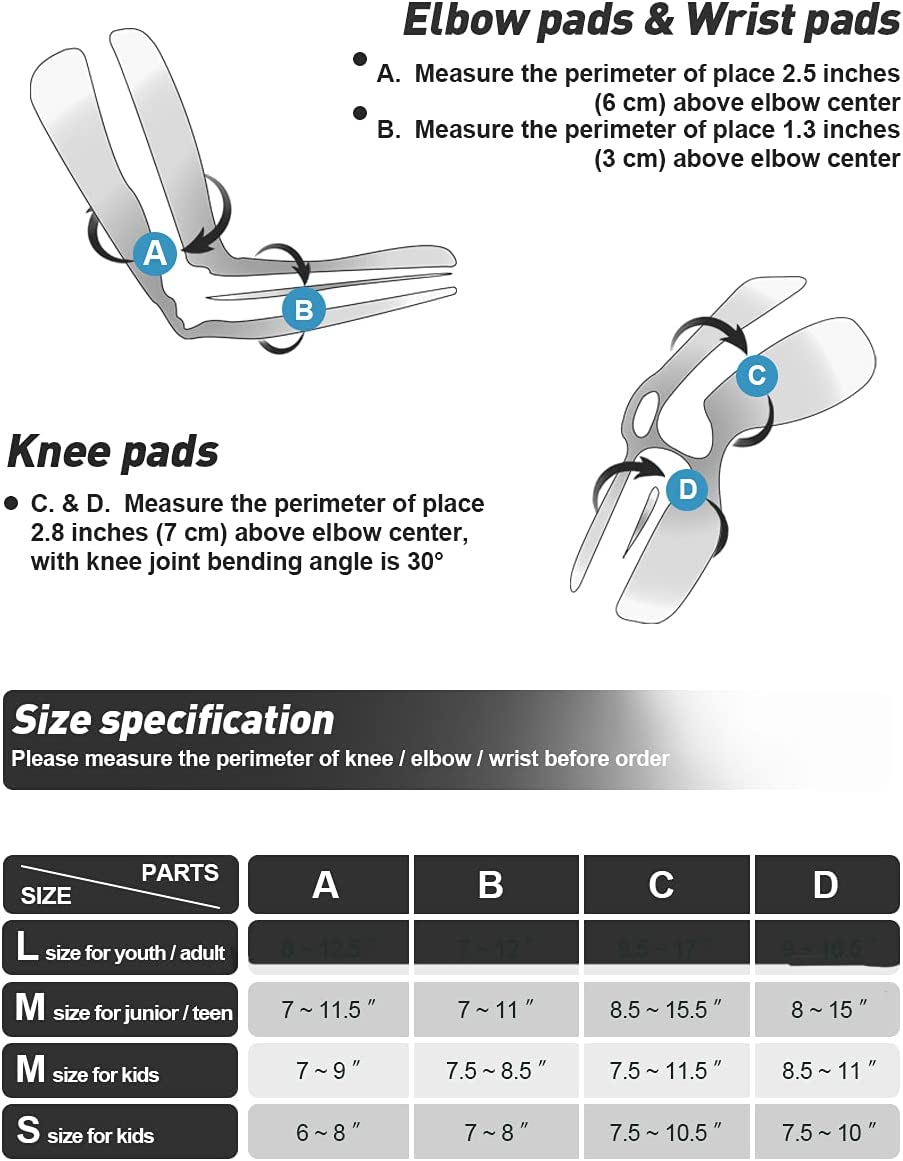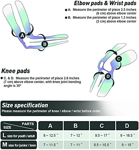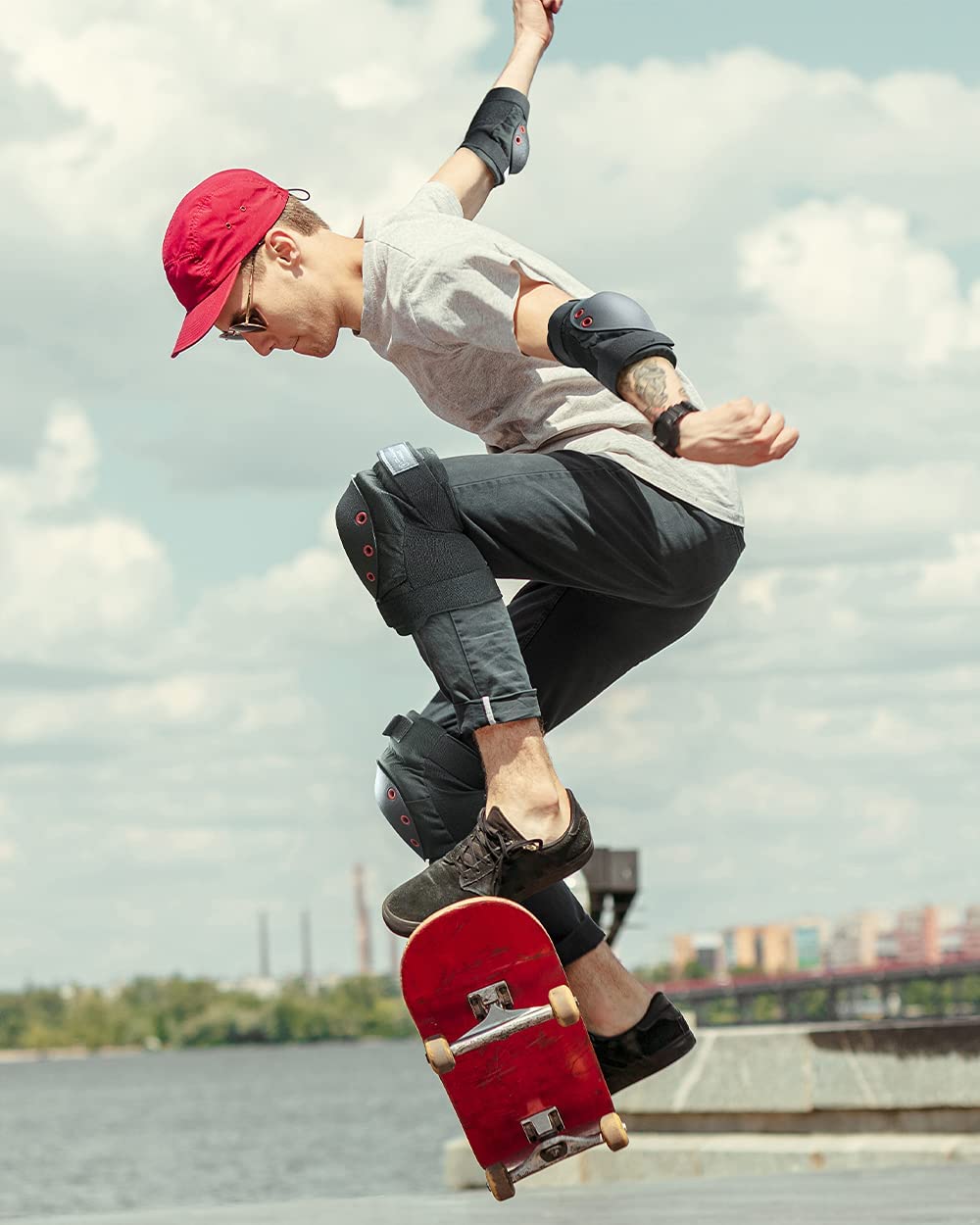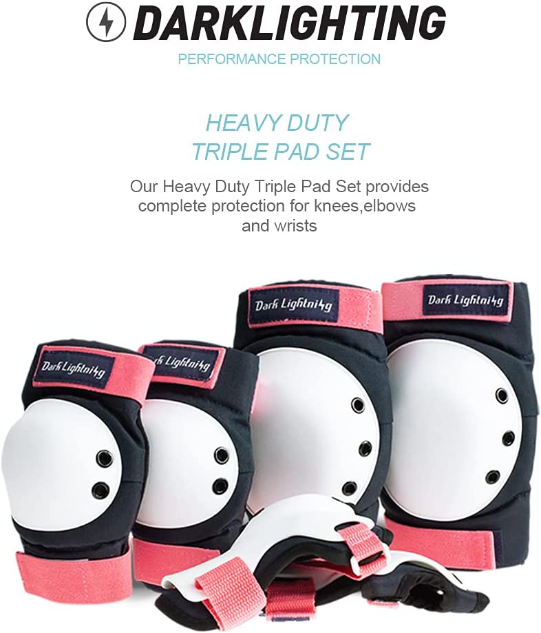 Dark Lightning Adult/Youth/Junior Knee Pads Elbow Pads Wrist Guards 3 in 1 Protective Gear