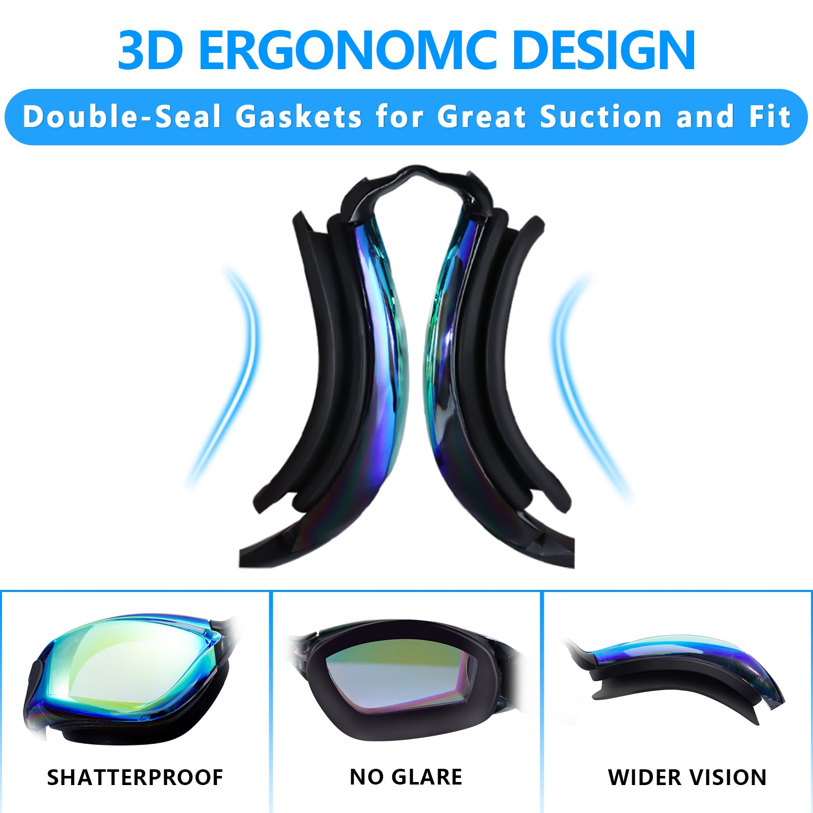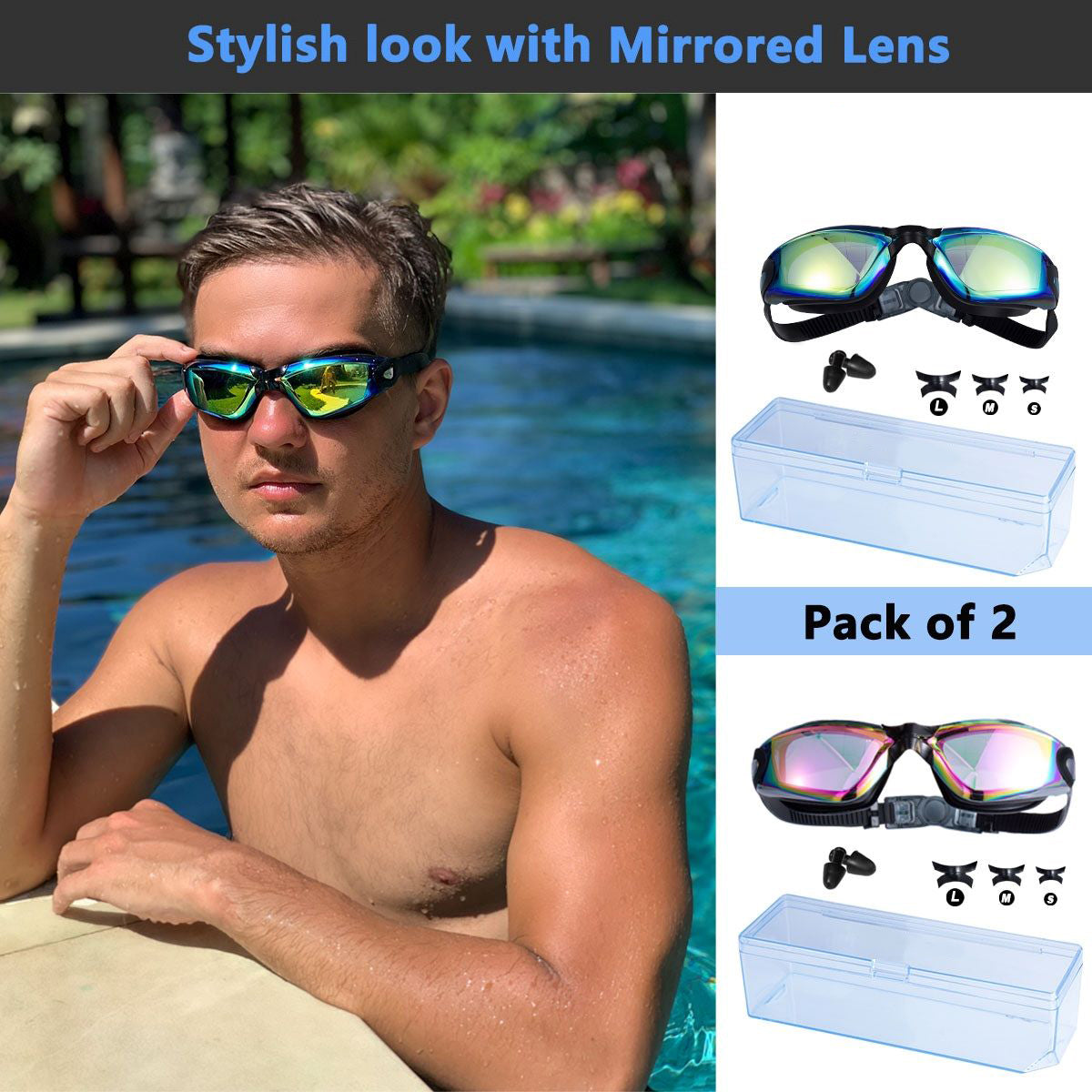 EverSport 2pack Swimming Goggles for Adult Comfortable Daily Swim Glasses with Mirrored Anti-Fog lens No Leak Water