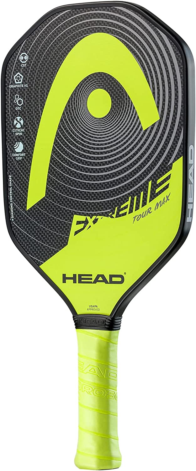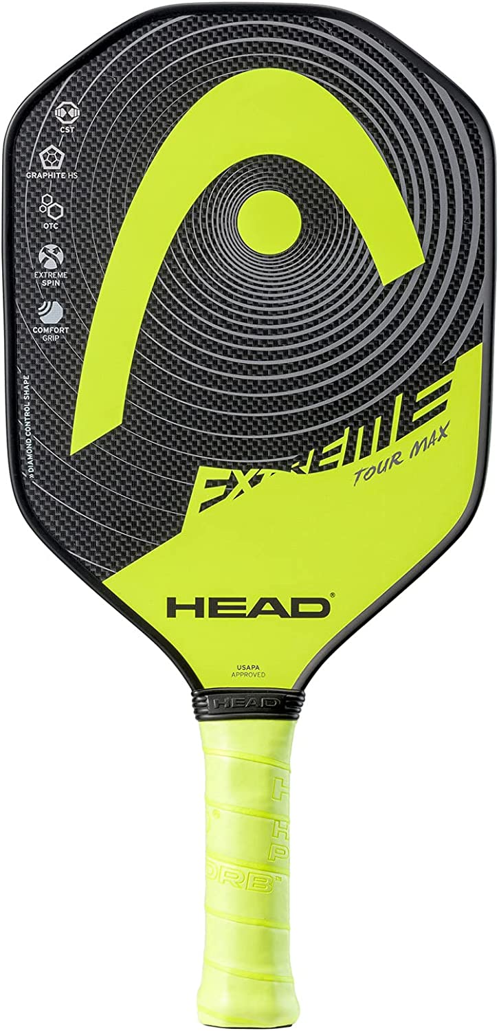 The Extreme Tour Max is the heaviest of the Extreme Tour paddles at 8.1 oz for additional power and optimal touch. It features an Optimized Tubular Construction (OTC) honeycomb polymer core and a carbon graphite hitting surface (GHS) for great feel and control. With a unique Diamond Shape for more control and Extreme Spin Texture for more bite on the ball, the Extreme Tour Max give you the extra power you need.
