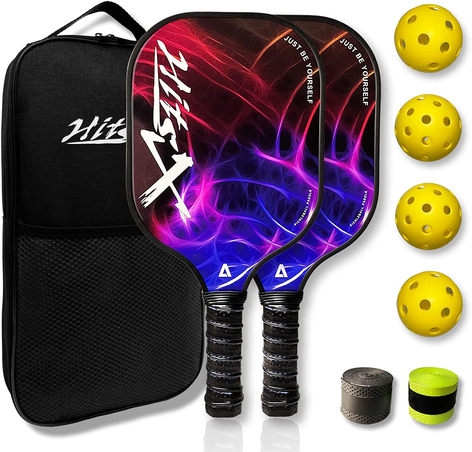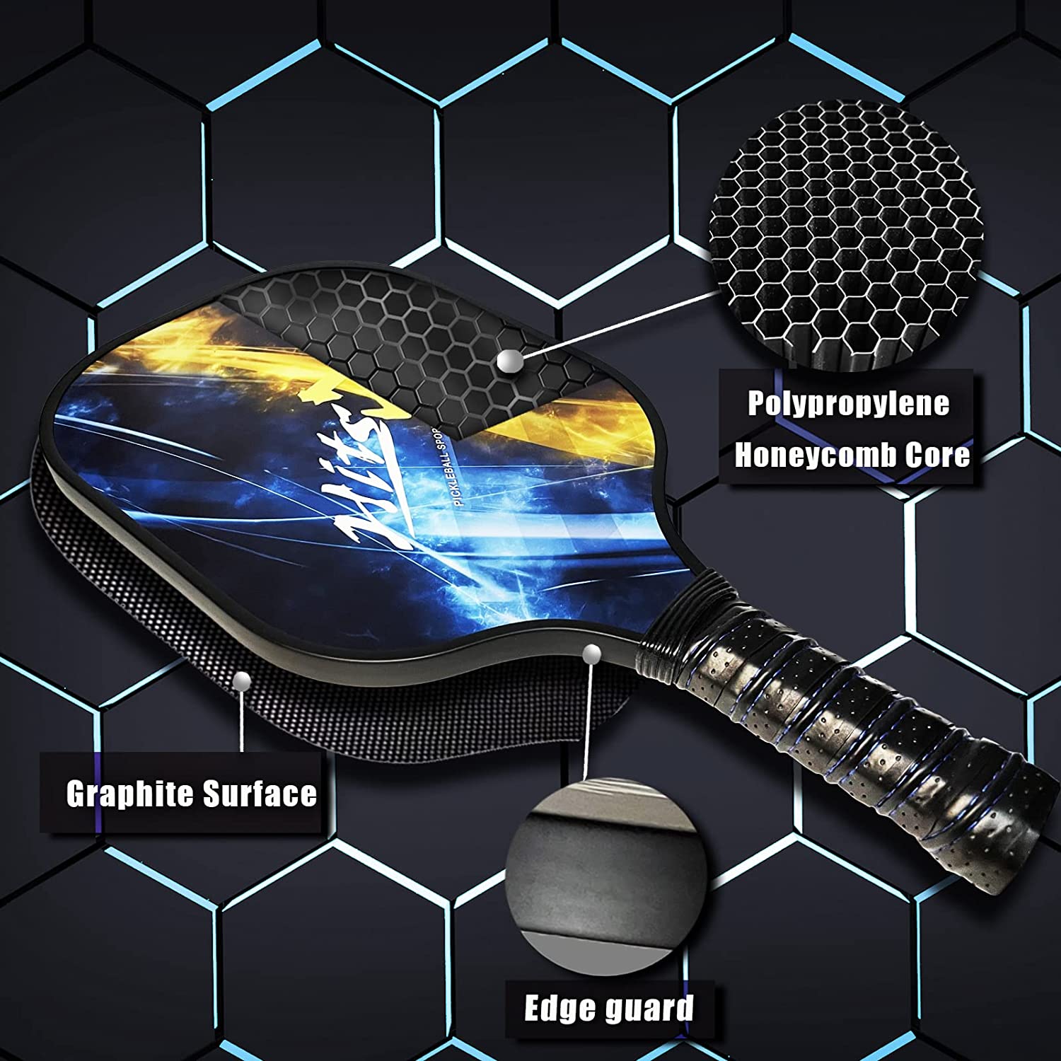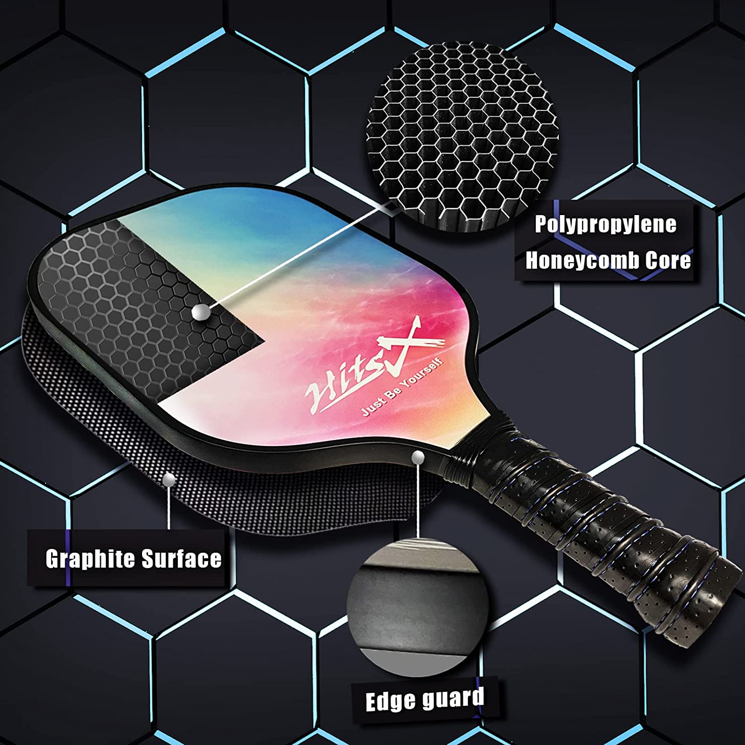 HitsX Pickleball Paddles, Graphite Pickleball Paddles Set of 2 Pickleball Racquet 4 Balls 1 Portable Bag