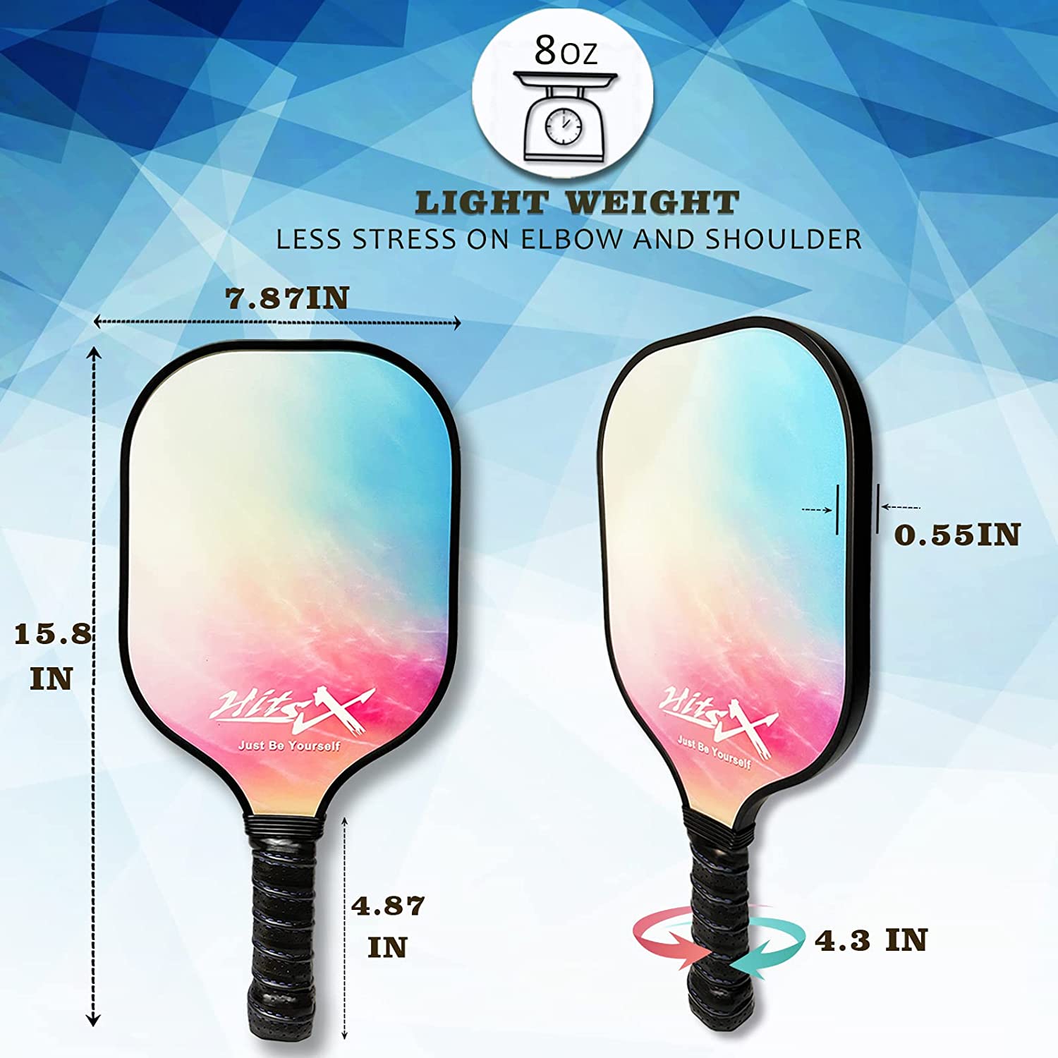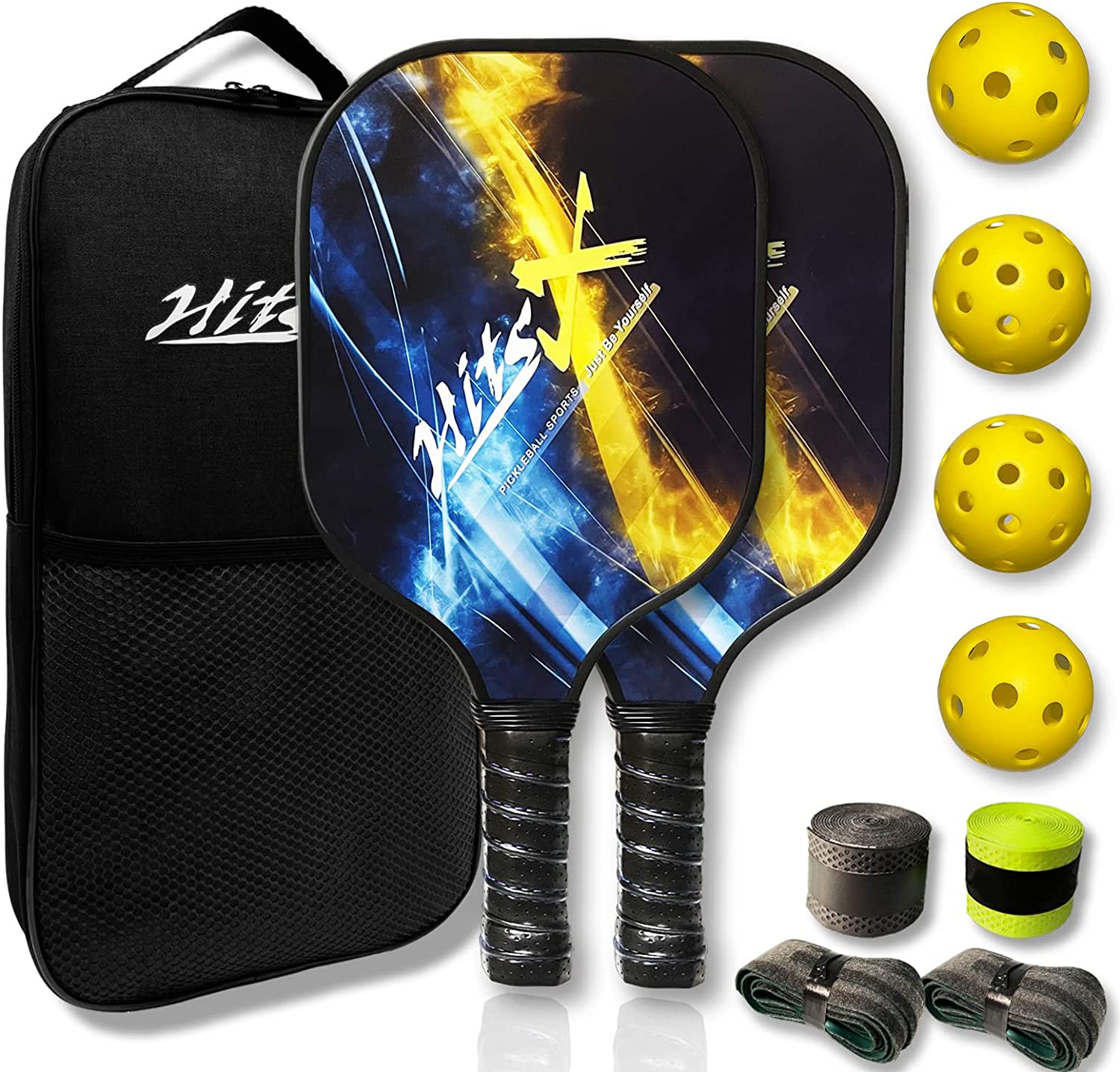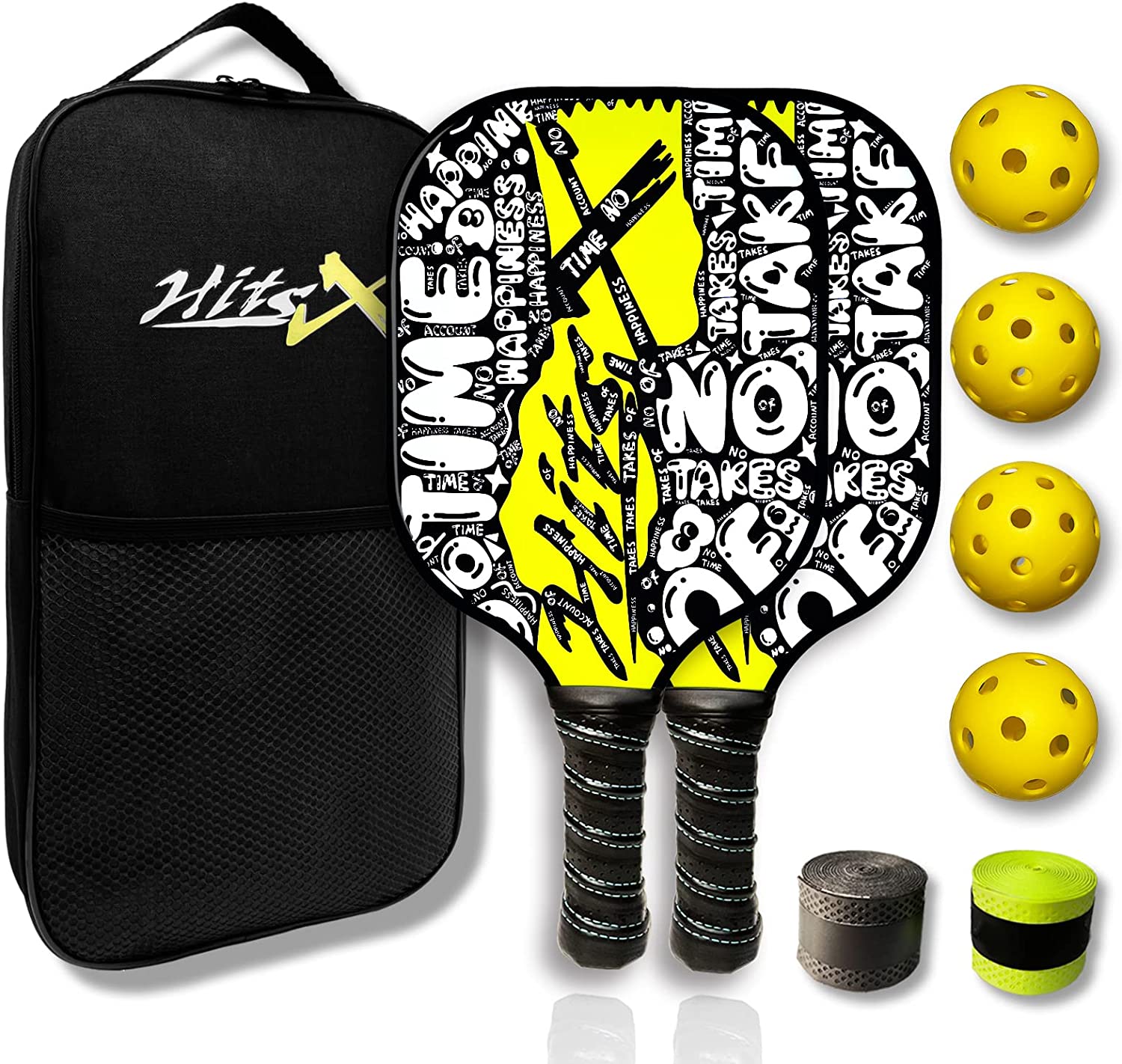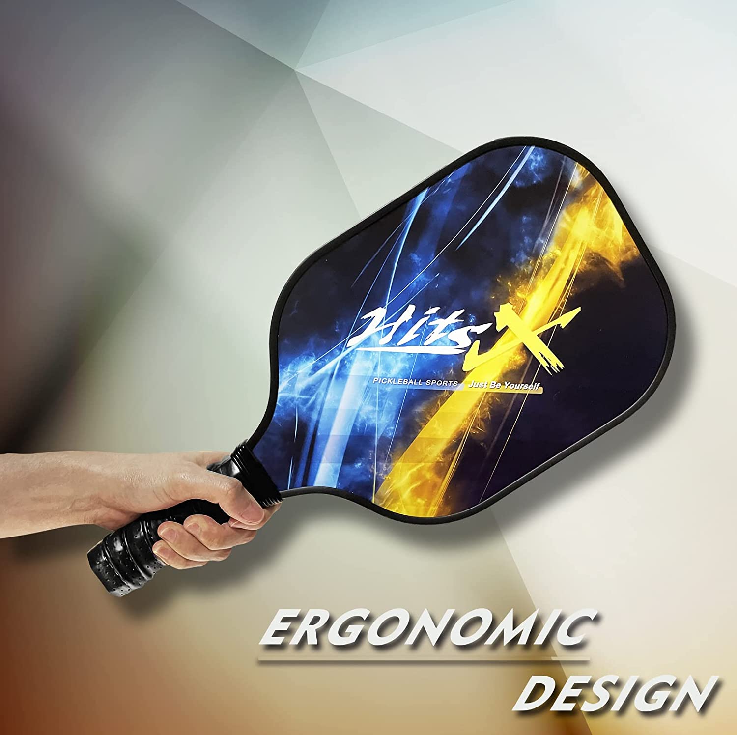 HitsX Pickleball Paddles, Graphite Pickleball Paddles Set of 2 Pickleball Racquet 4 Balls 1 Portable Bag