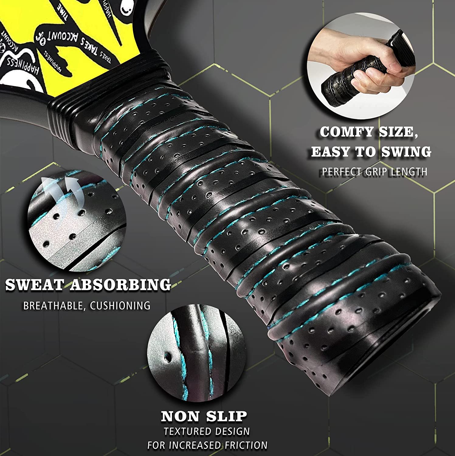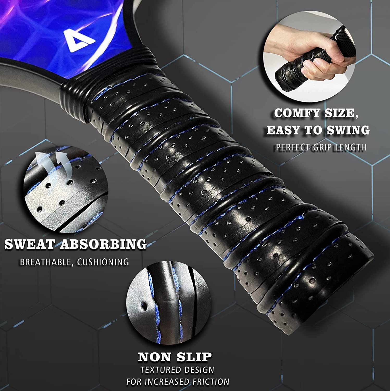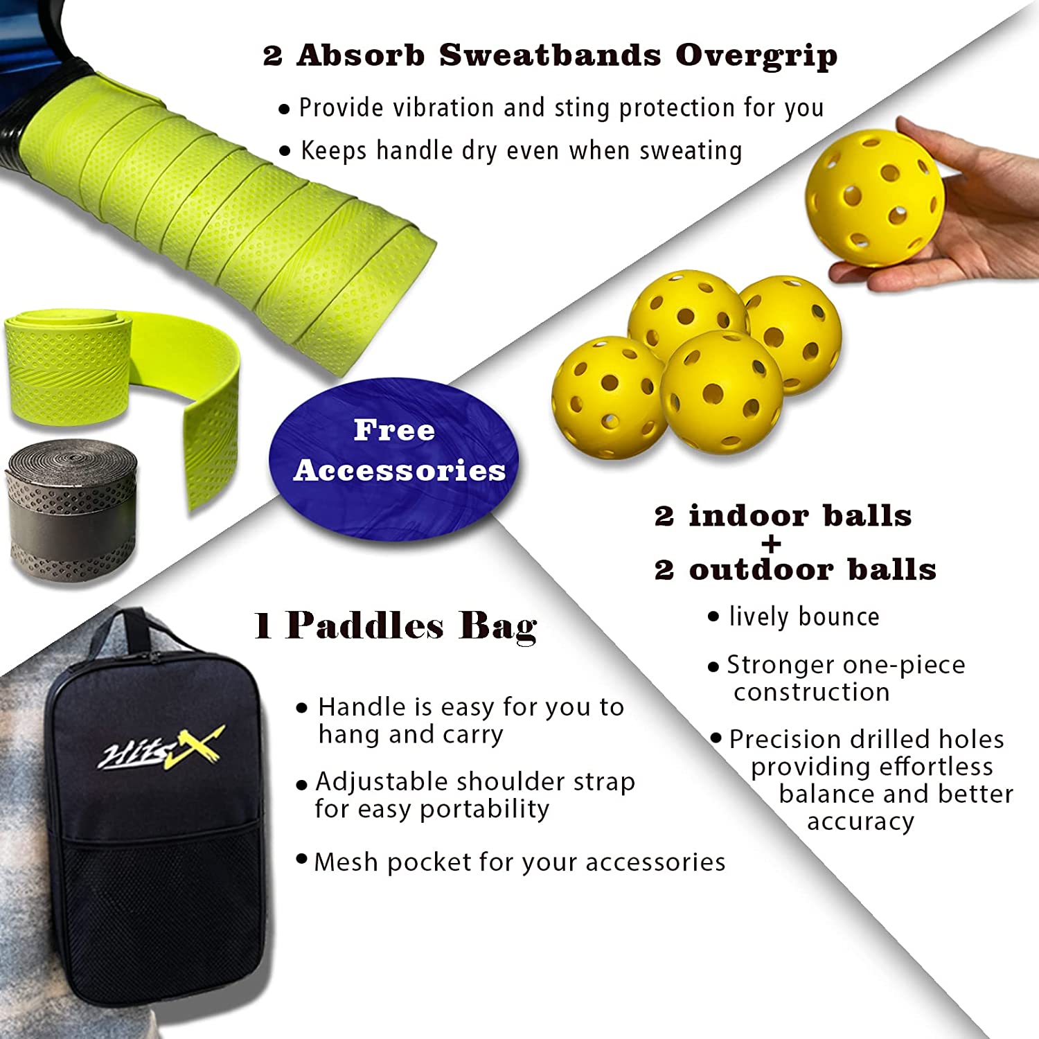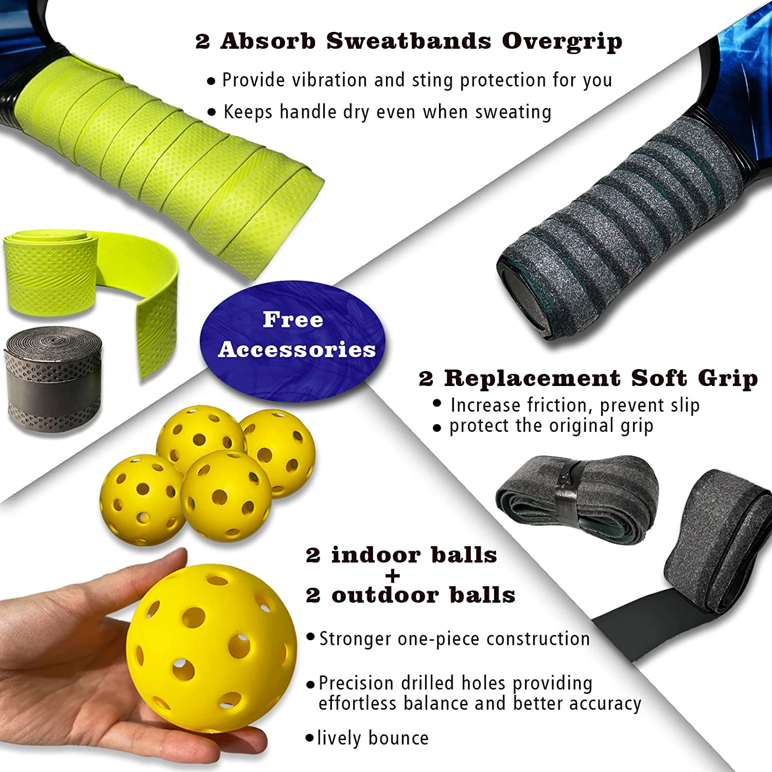 - ●【All-in-One Pickleball Sets: 2 paddles + 1 portable bag + 2 indoor & 2 outdoor balls + 2 absorb sweatbands overgrip. 】