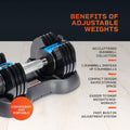 Start small and work your way up with this single adjustable dumbbell, which starts at just 5 lbs. Gradually increase the weight you’re lifting in 5-lb-increments up to 25 lbs using our built-in easy adjustment system, eliminating the need for a full rack of gym weights. Discover the power of your body’s potential by taking an active role to gain strength, overcome obstacles and achieve your goals.