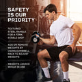 The ingenious design of our dumbbells set makes it simple and straightforward to add or remove adjustable weights. Just move the slider while the dumbbells are on the rack to automatically increase or decrease weight. With its safety lock mechanism, the weight plates lock while in use so you'll feel safe and confident using it.