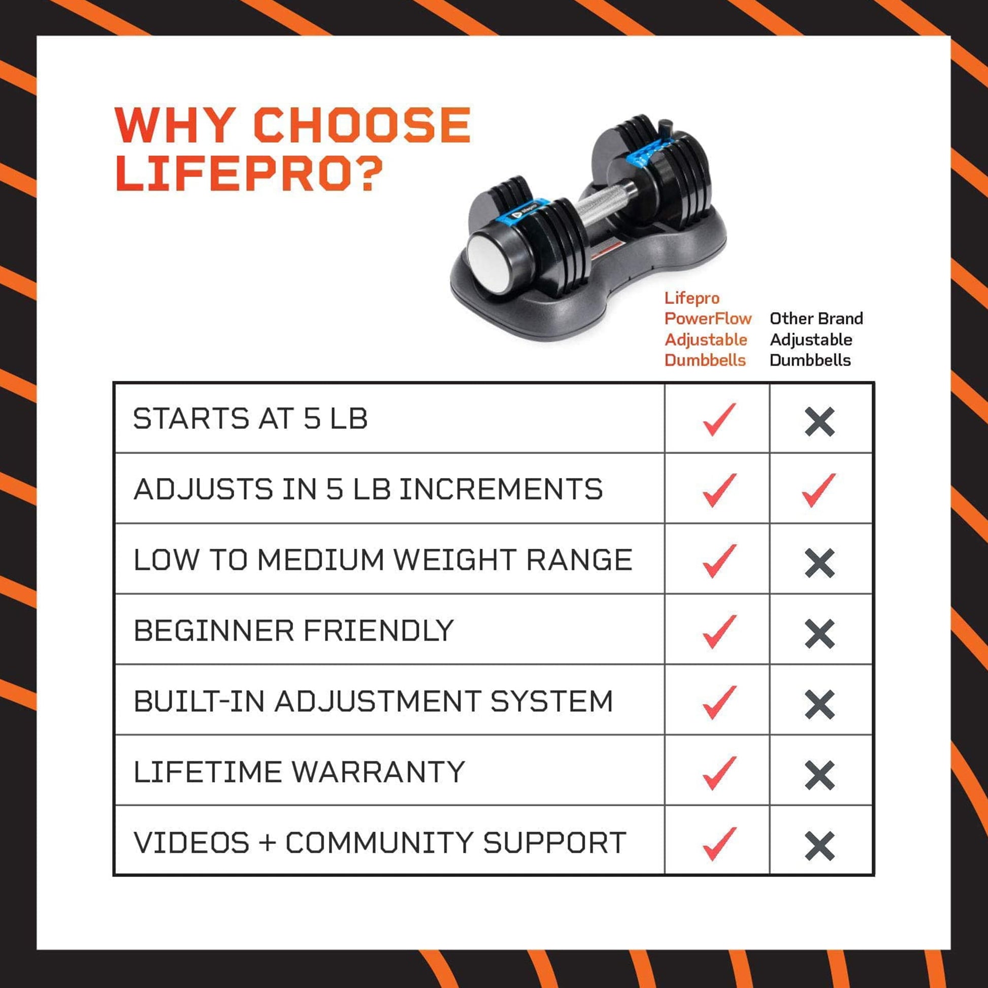 Lifepro PowerFlow Plus 5-in-1 Single 25-lb Adjustable Dumbbell Home Gym Equipment, 2 pc