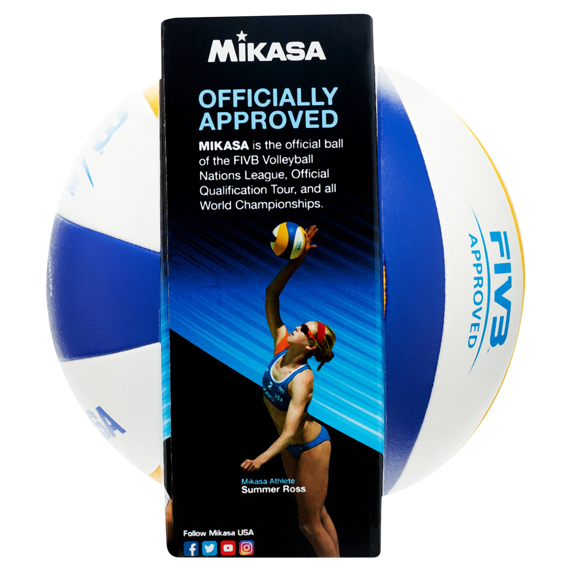 Get ready to bump-set-spike with the Mikasa Beach Champ VLS300 Outdoor Volleyball. This premium quality volleyball is designed to help you have fun in the sun all summer long! Beach Champ Volleyball is FIVB Approved and an FIVB Official Game Ball that is heavy duty enough for the pros, but great for beginners as well. Get a volleyball from a trusted volleyball around the world that has lead pros to victory in multiple Olympic competitions. Mikasa provides only the best when it comes to todays beach volleyballs!