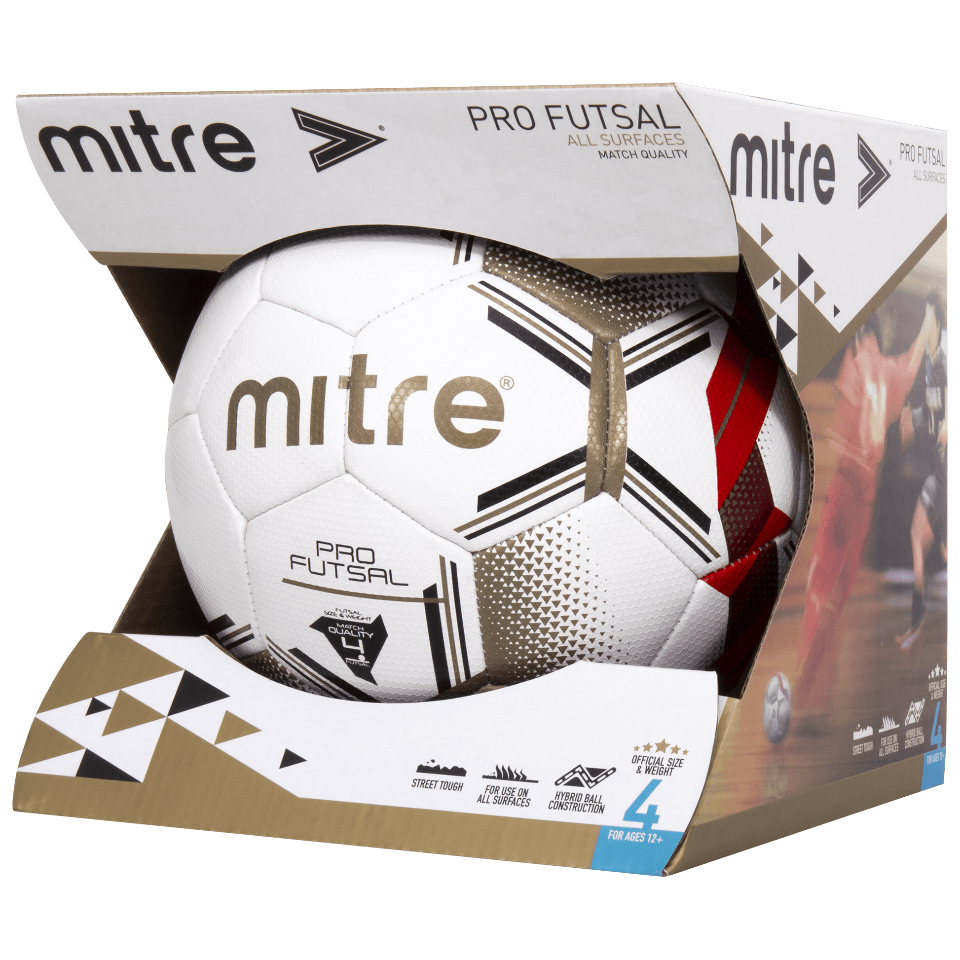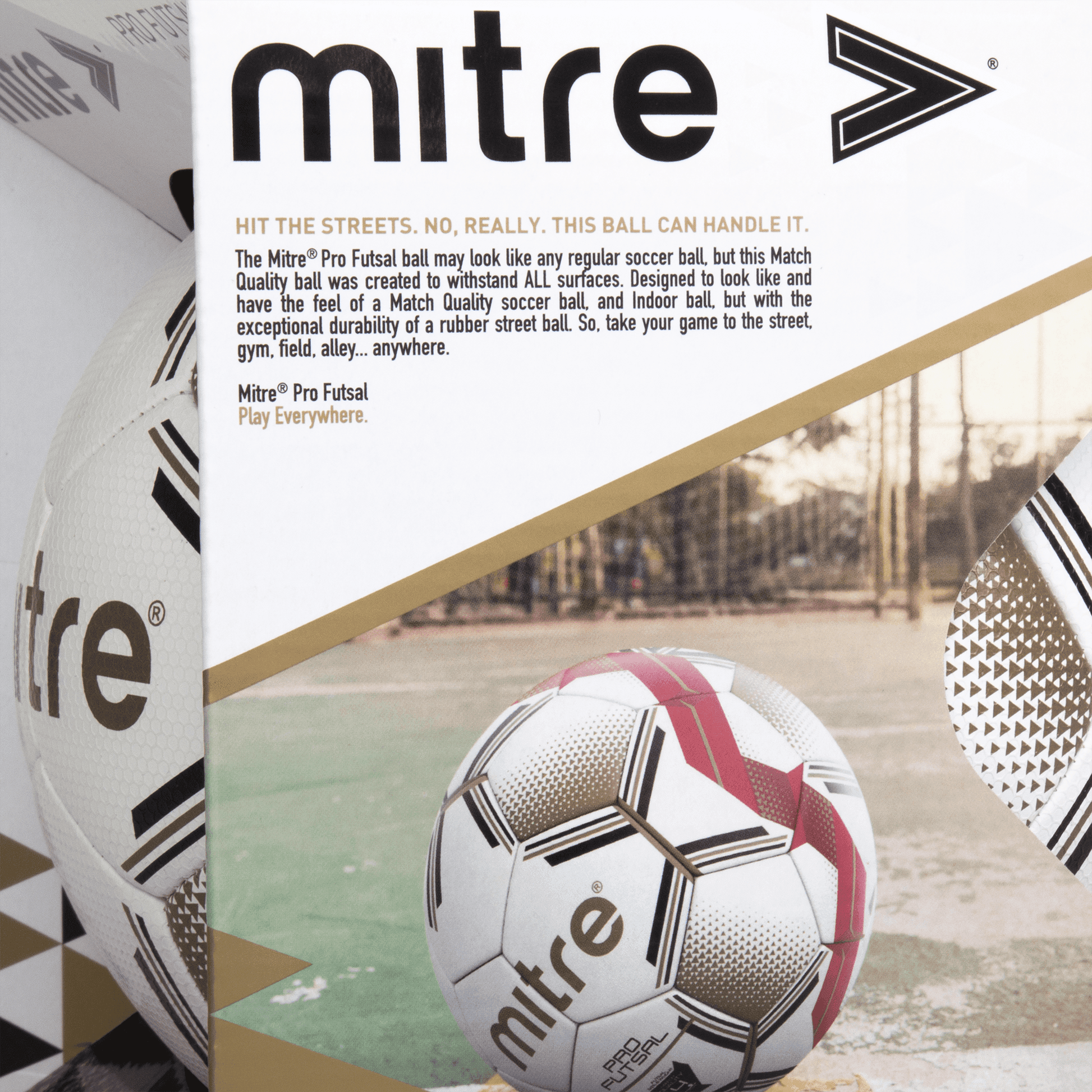The Mitre Pro Futsal ball may look like any regular soccer ball, but this Match Quality ball was created to withstand ALL surfaces. Designed to look like and have the feel of a Match Quality soccer ball, and Indoor ball, but with the exceptional durability of a rubber street ball. So, take your game to the street, gym, field, alley? anywhere.
