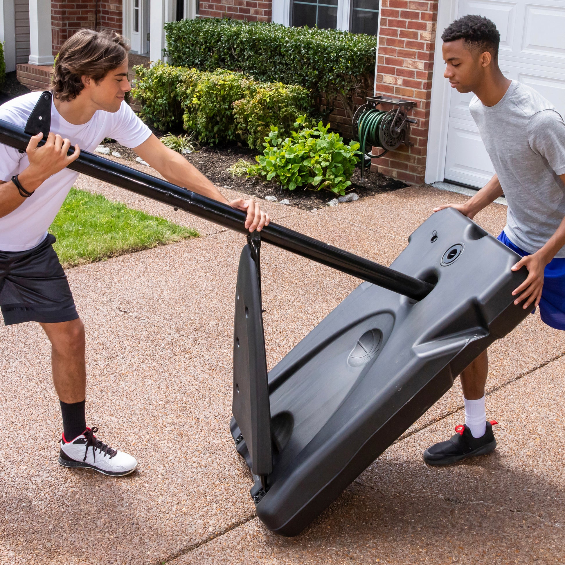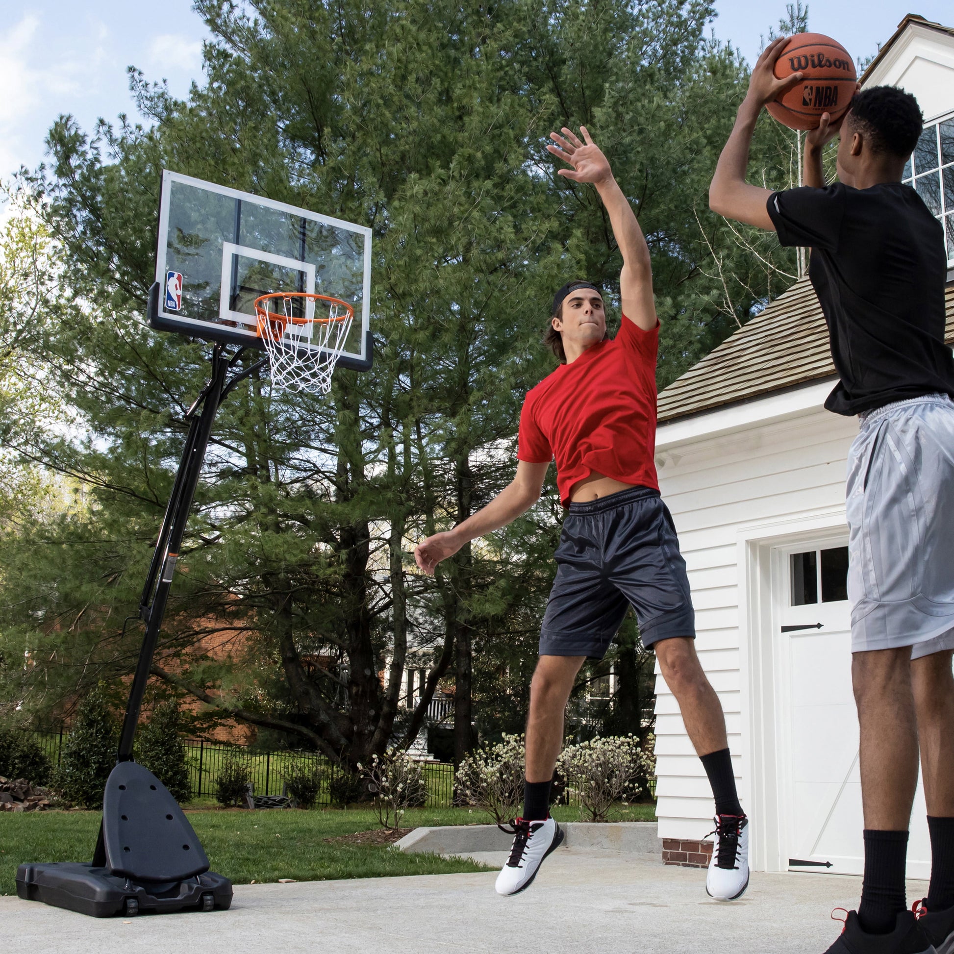 Turn your backyard into a basketball court with this 50” portable basketball hoop! This Officially Licensed NBA 50” portable basketball hoop has a durable polycarbonate backboard. Polycarbonate backboards are built to endure high impact making this basketball hoop great for rebounding performance. Ideal for indoor or outdoor recreational play.
