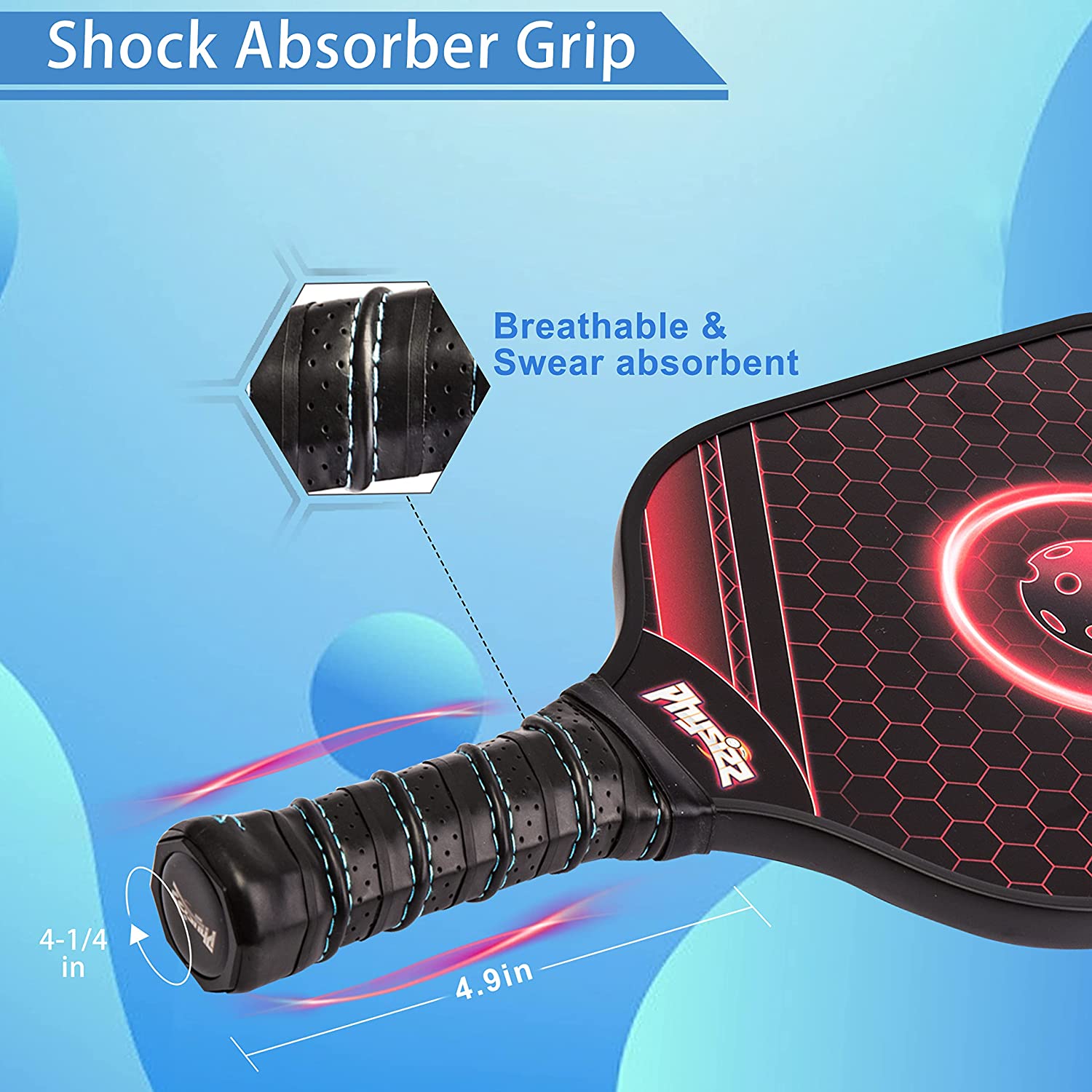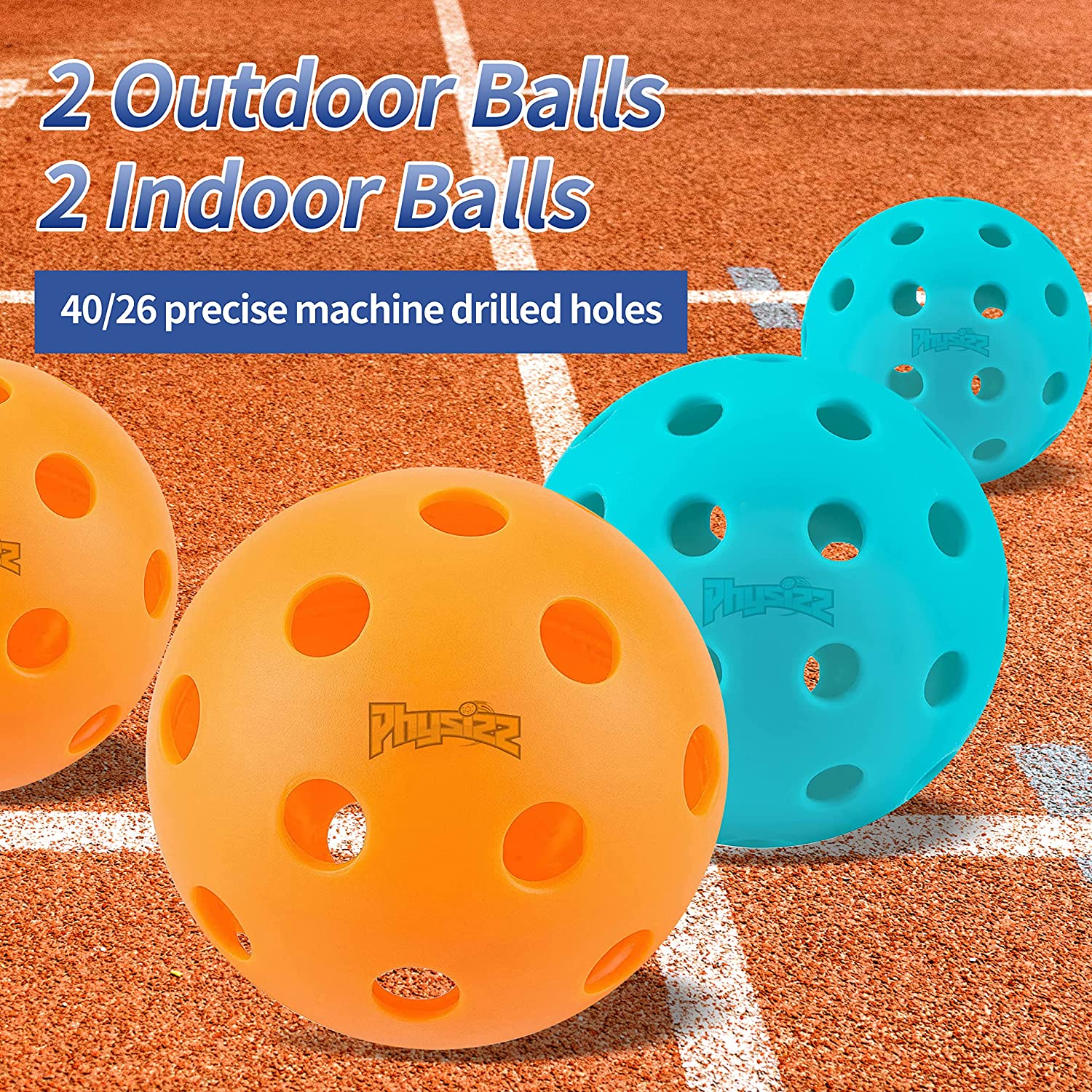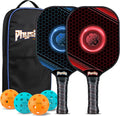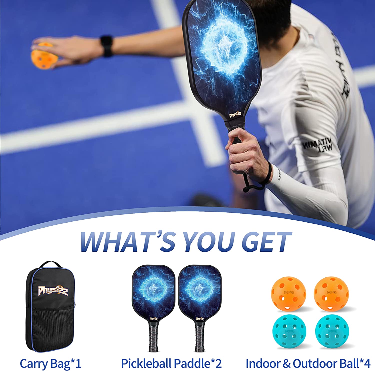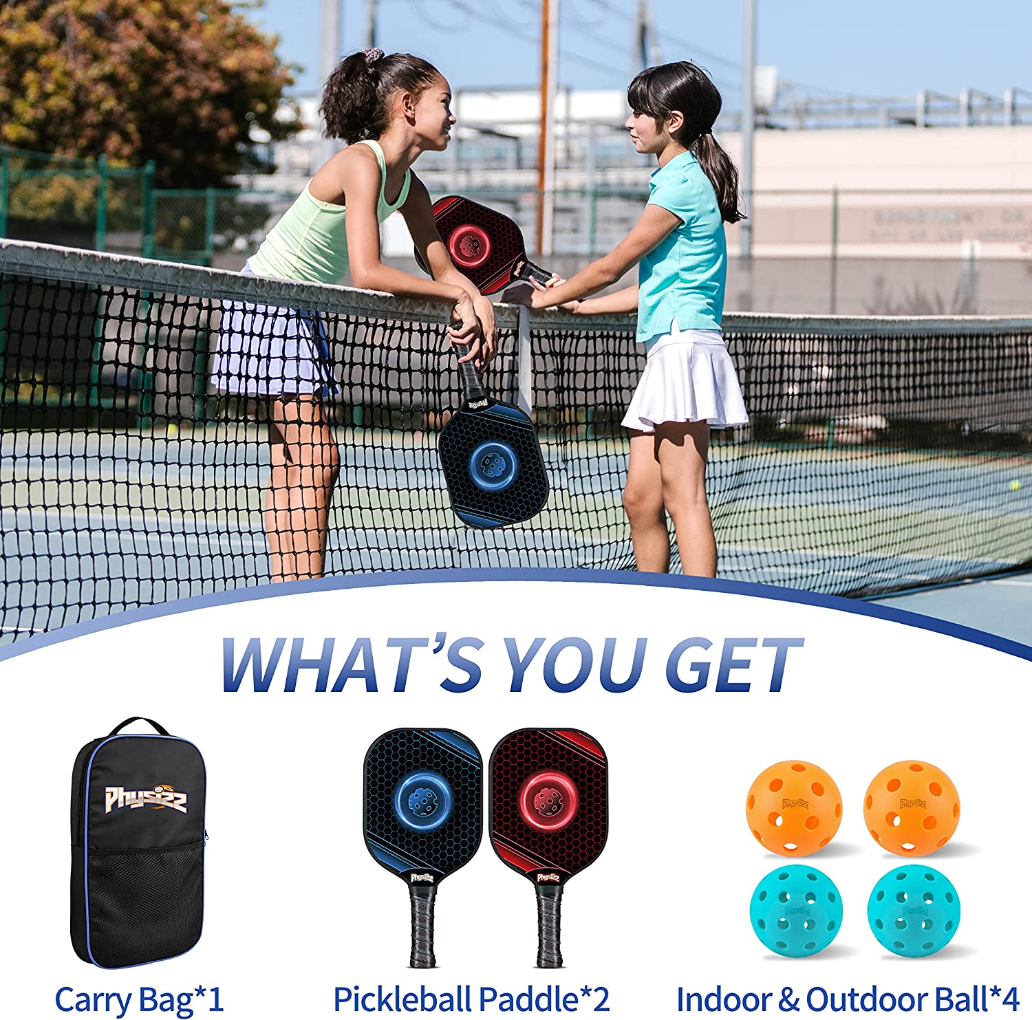 PHYSIZZ Pickleball Paddles Set of 2, Lightweight Graphite Surface Honeycomb Core Pickleball Rackets with 4 Pickleball Balls