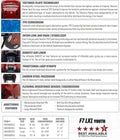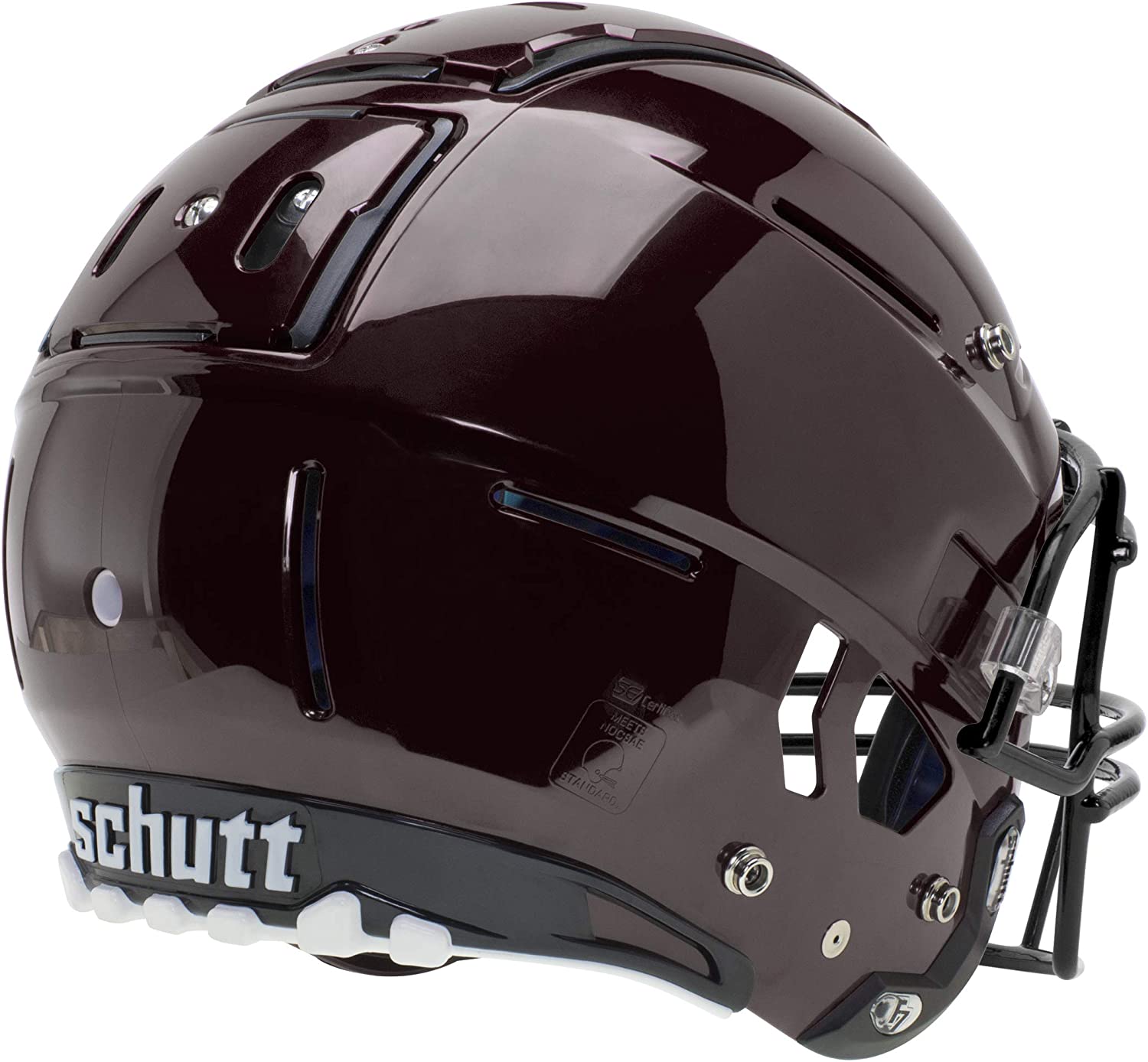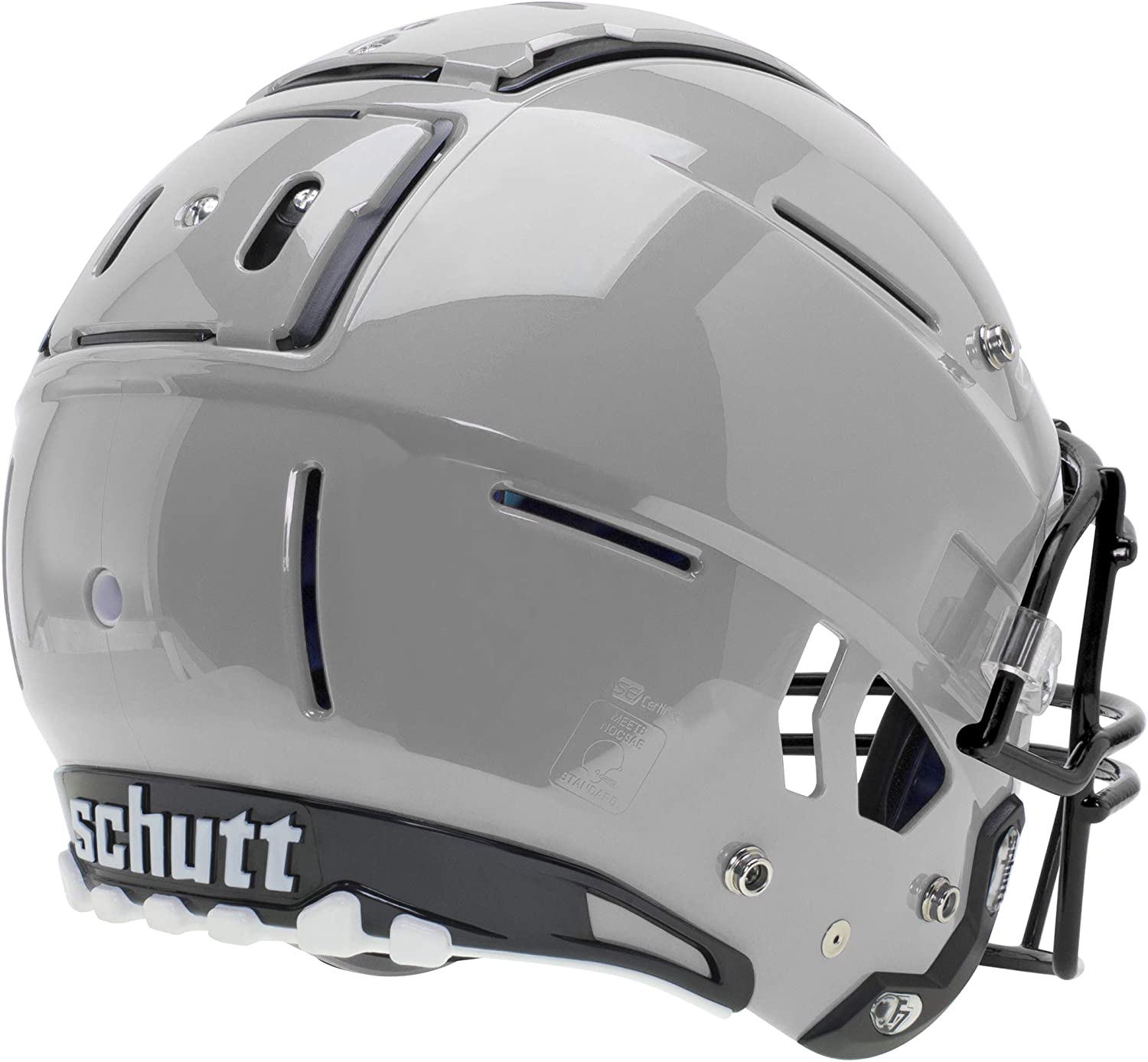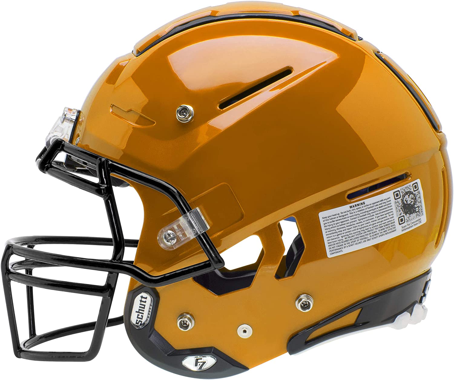 Schutt Sports F7 LX1 Youth Football Helmet comes Standard with a Carnbon Steel Guard and Black soft-cup chinstrap. TPU (thermoplastic urethane) Cushioning – the most advanced impact absorption system in football. TPU Cushioning is proven to absorb more impact across a wider variety of temperatures than any other helmet on the field. 3-Dimensional Movement Tektonic Plates – strategically located in the most impacted areas of the helmet, Tektonic Plates incorporate an additional TPU Cushion and move independently of the helmet, in multiple directions, improving the helmet’s performance against rotational forces. Helmet Stabilization System – Incorporating a larger, more comfortable jaw pad configuration, the HSS utilizes both internal and external stabilizers, high performance impact foam – which is wrapped in soft, durable and comfortable synthetic leather. The HSS frames your face and gives you a secure, “locked-in” feel inside the helmet. Multi-Layer, Integrated Liner System – featuring a non-inflatable lateral air liner, along with a non-inflatable Comfort Fit Liner in the crown, as well as the Radial Diffusion System (RDS) liner. This system improves independent movement of the liner, TPU Cushioning and the head, resulting in better fit and improved performance against rotational forces. Flexural Resistance Shell Design – engineered into the back shelf and temporal side wings of the shell, these design approaches improve the structure, strength and durability of the shell, while increasing the area for TPU Cushioning in those high impact areas and improving impact absorption. High Performance TPU Front Pad – this two-piece, molded front pad is comfortable and features dual-layer TPU. NOTE: Facemask NOT included.
