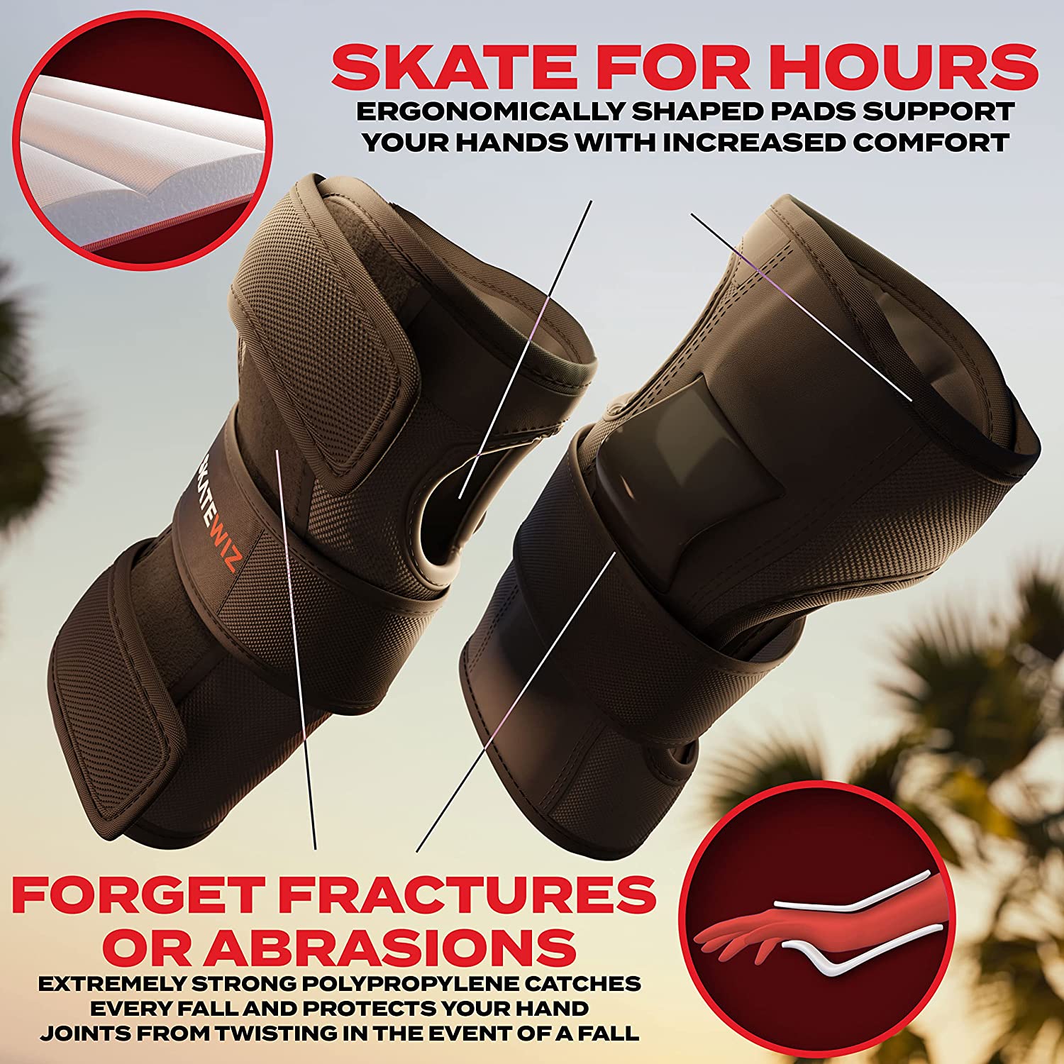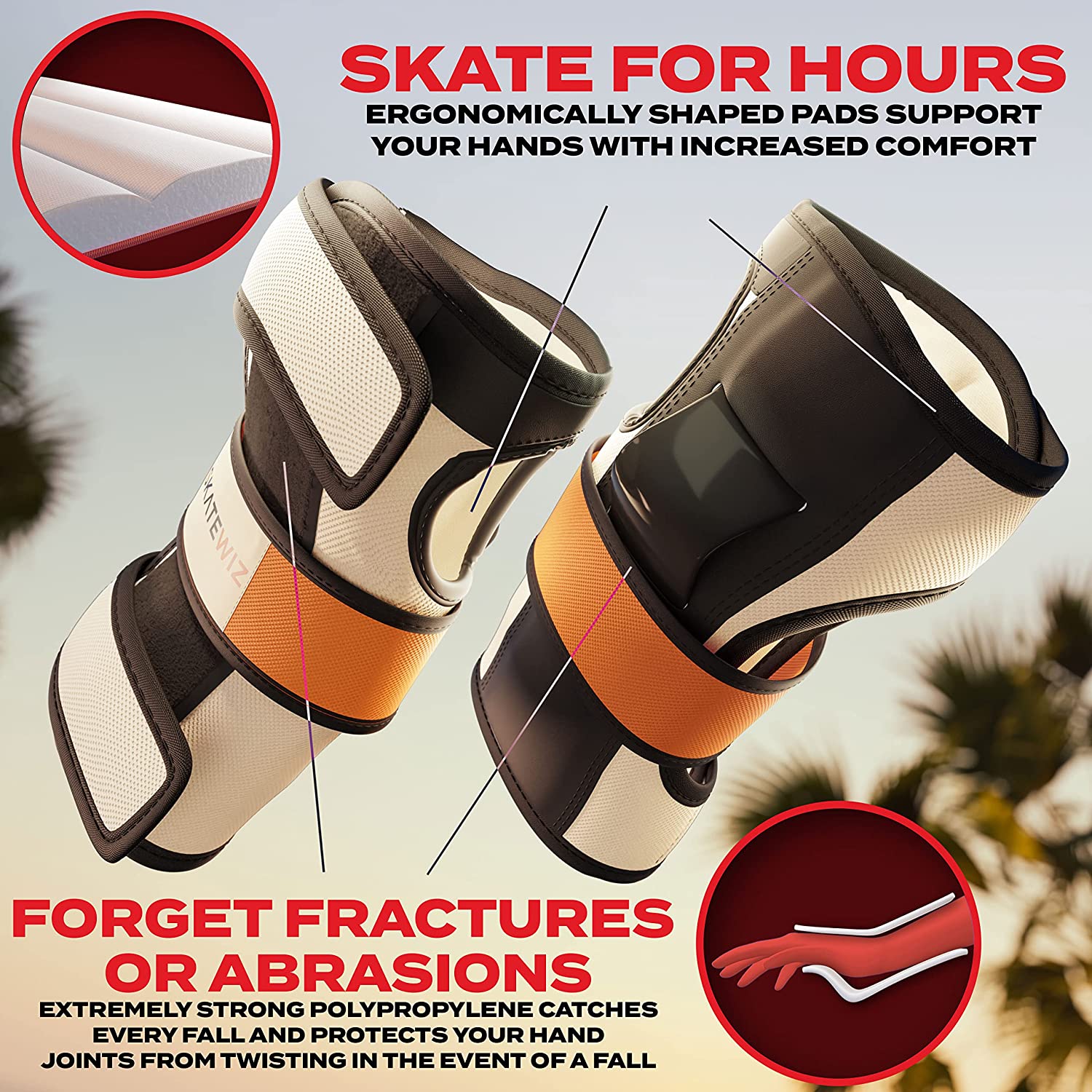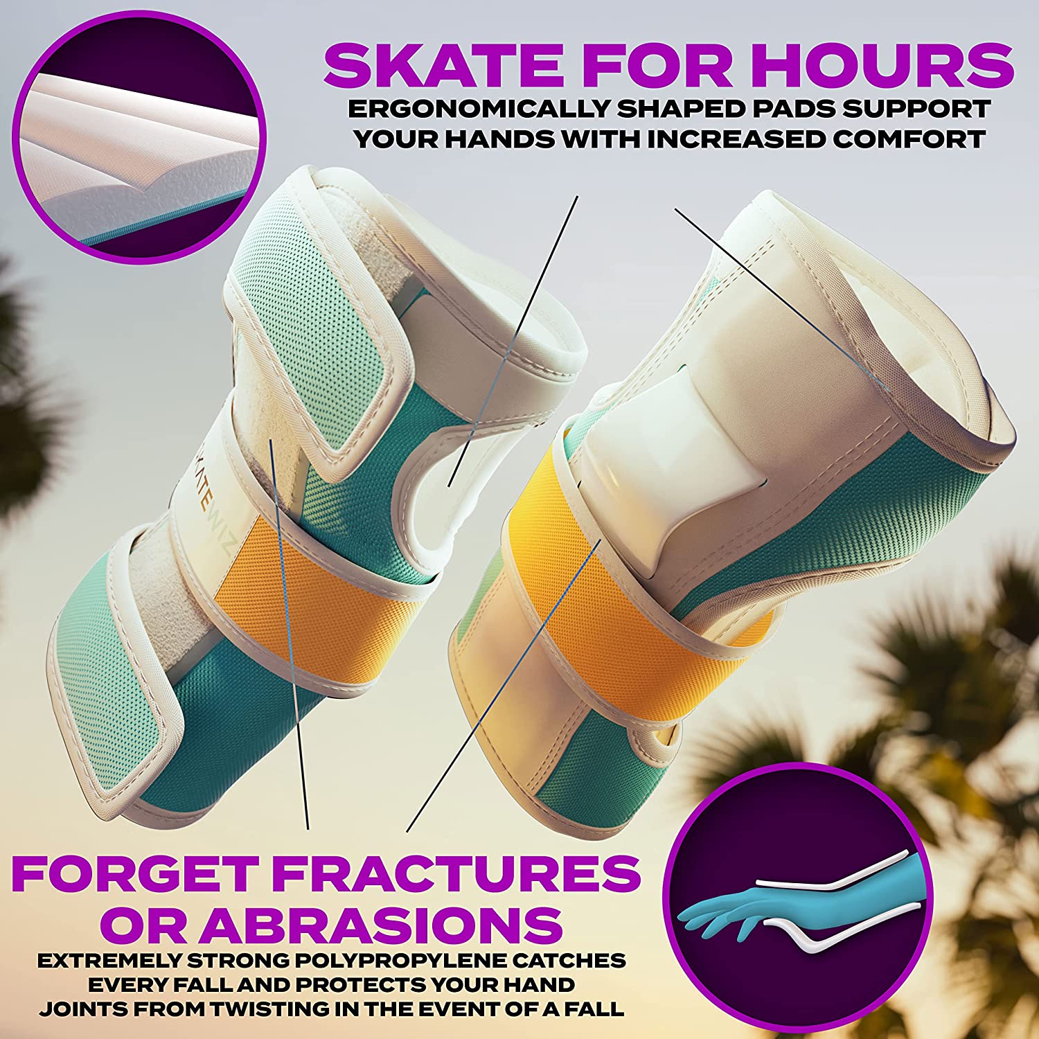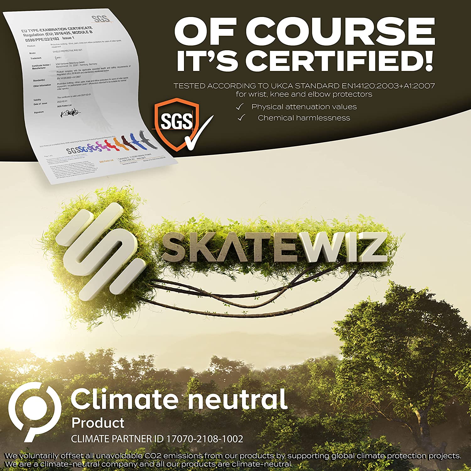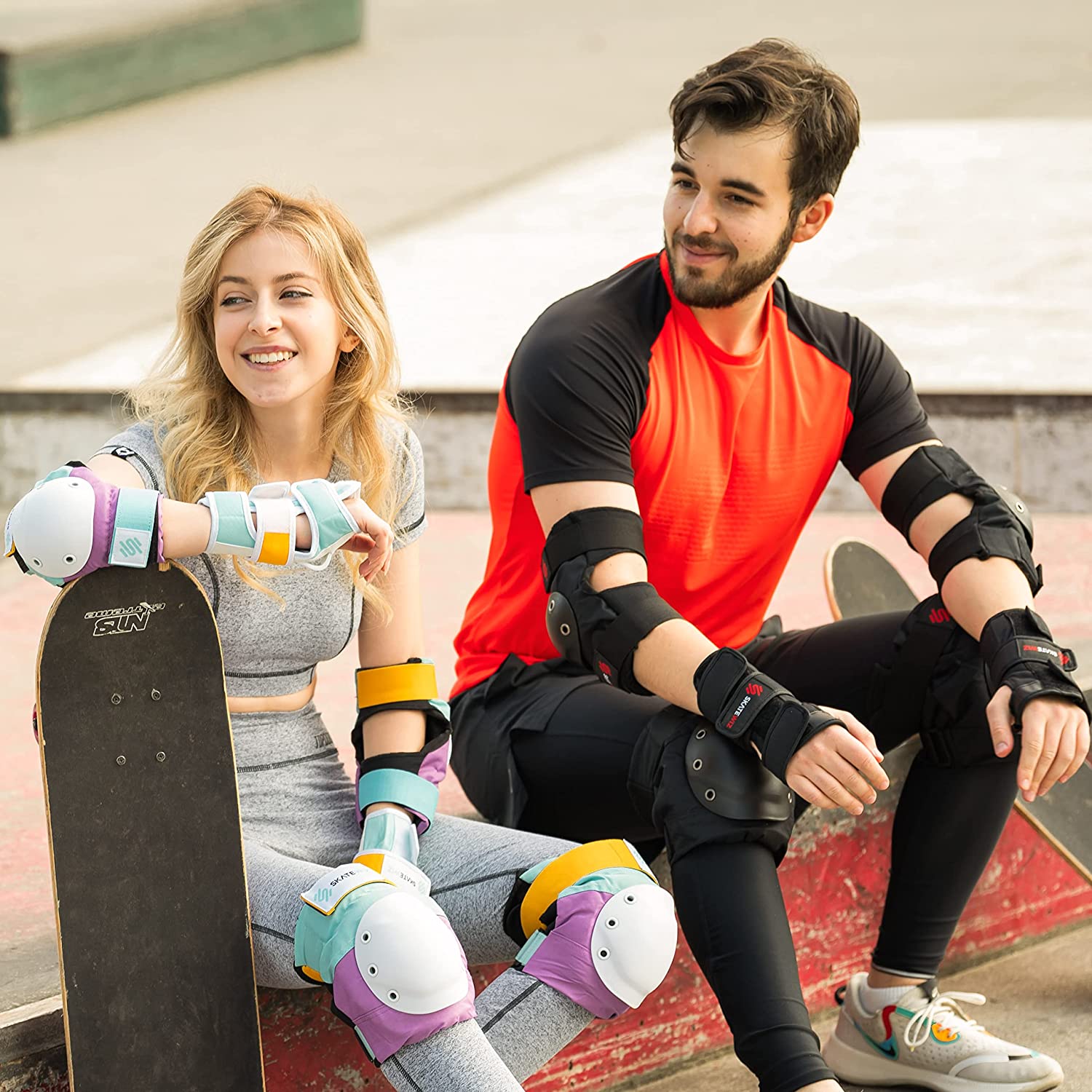 - SHRED IN SAFETY – Make sure your joints are protected before you pull on your roller skates or step on your board. Cover your wrists, knees, and elbows with 6 expertly engineered pads from SKATEWIZ