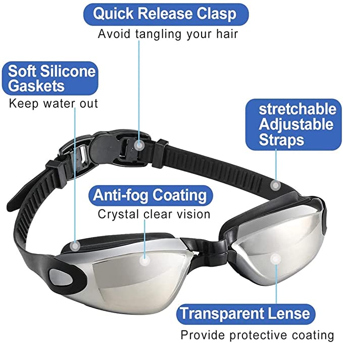 - šćIndoor & Outdoorć:The mirror swim goggles offer you clear under water and outdoor