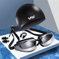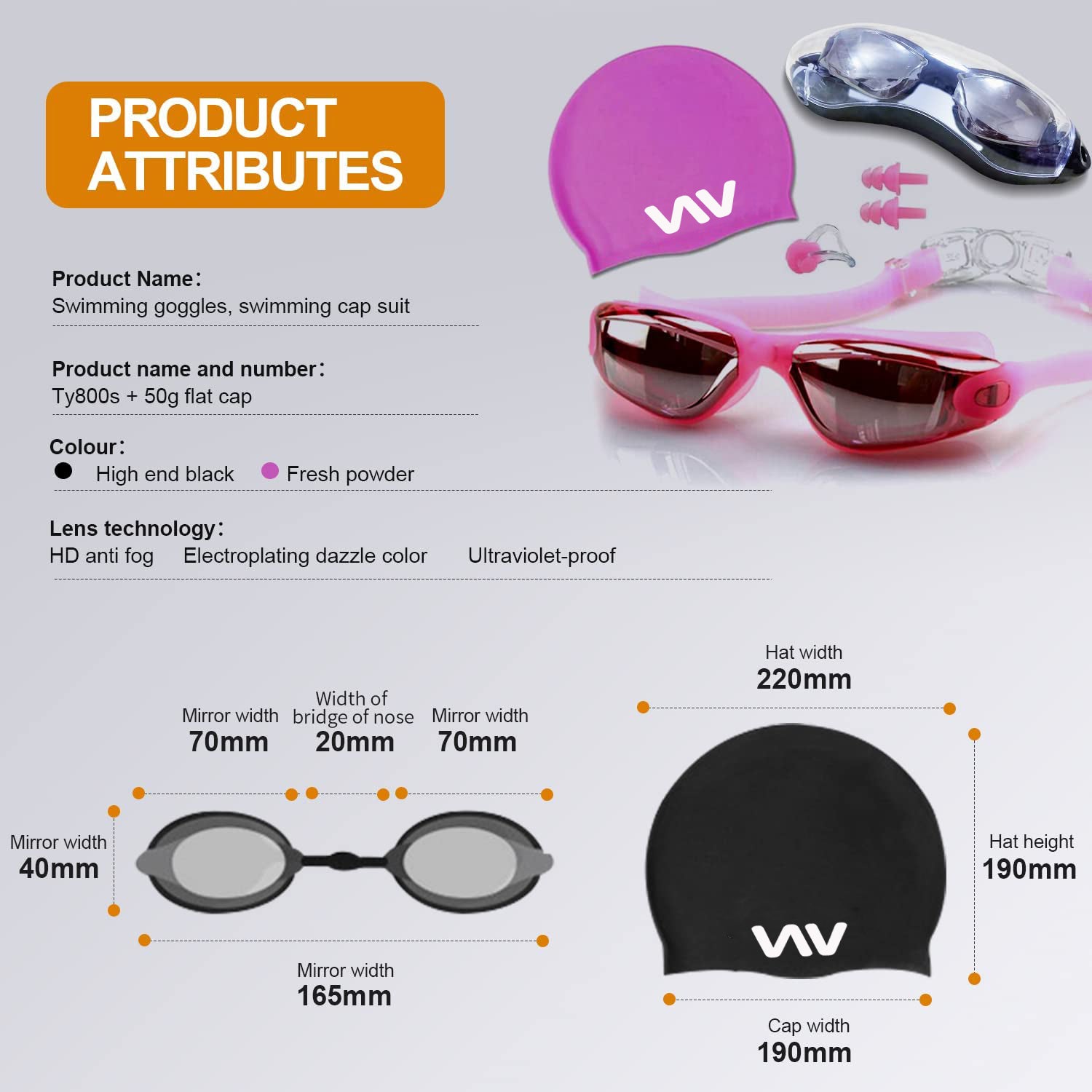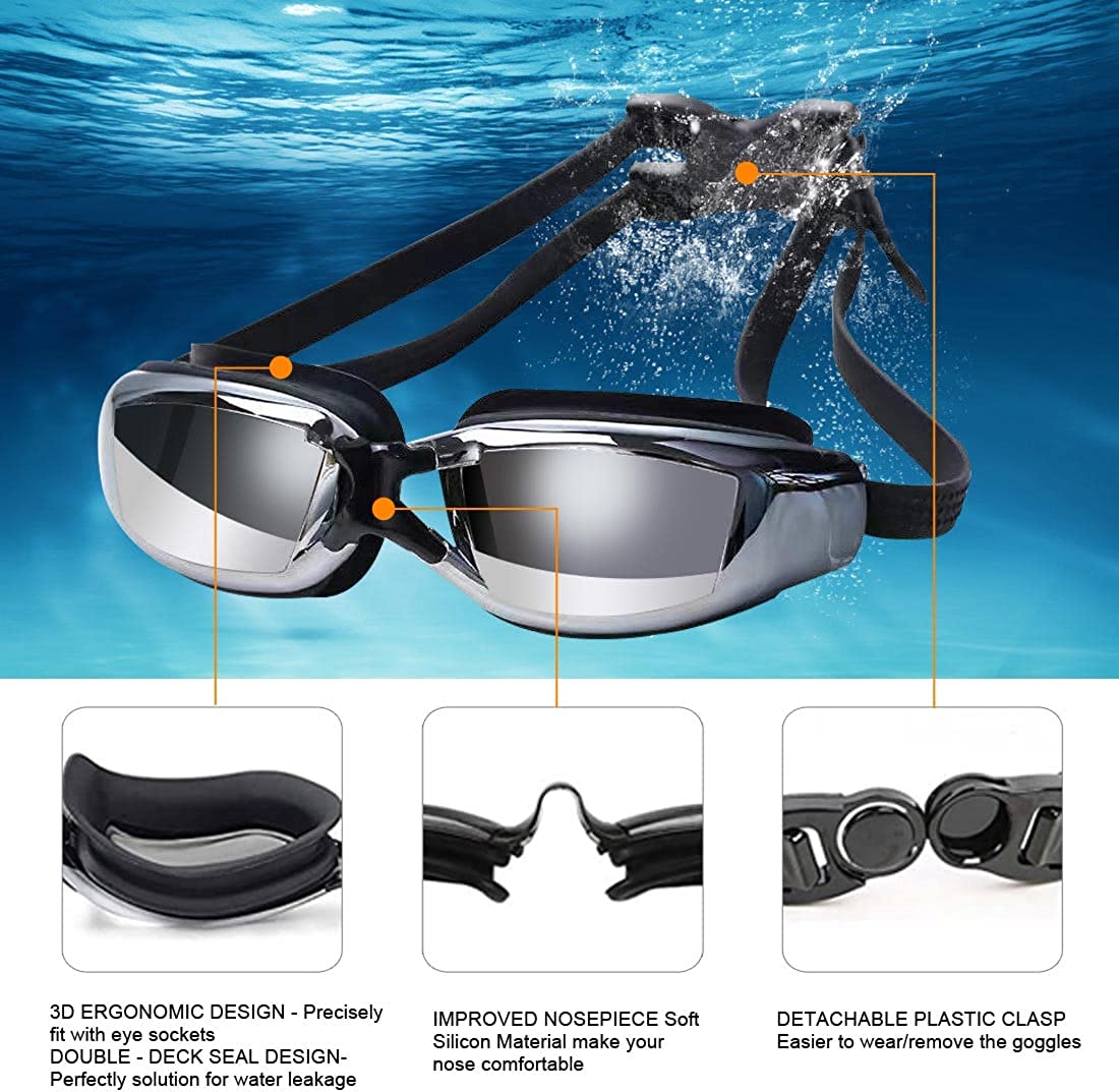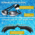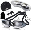 Swimming Goggles Set for Adult Men Women, Polarized Anti-Fog UV Protection Mirrored Swim Goggles with Swinming Cap, Nose Clip, Earplugs, Flannel bag-Black
