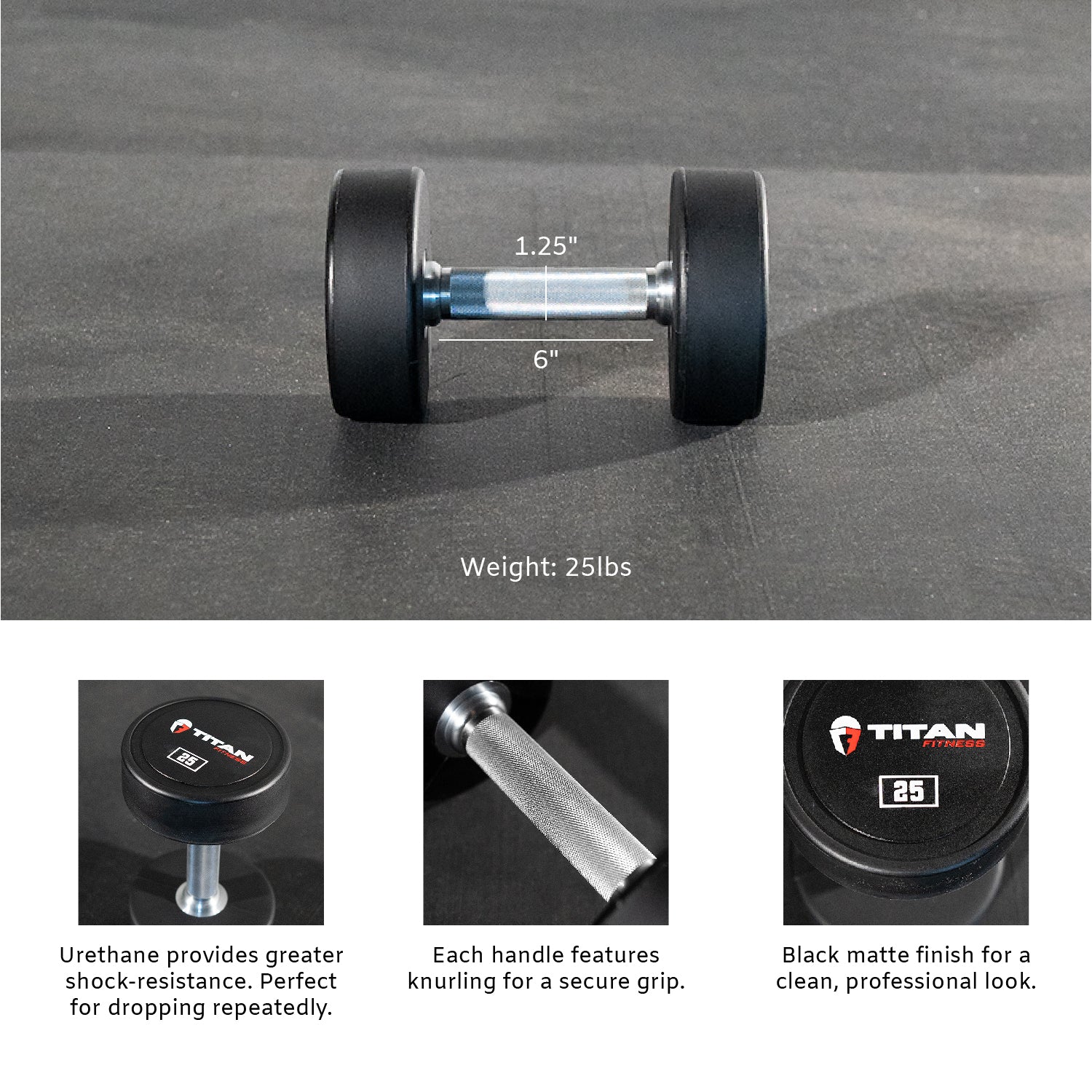 Titan Fitness 25 lb. Pair Round Urethane Dumbbells
