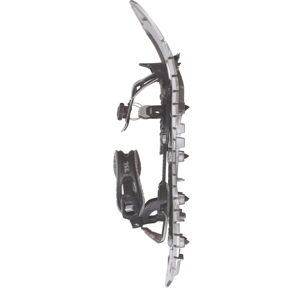 Never has a snowshoe offered such outstanding grip. Combined with the vertical blades, the stainless steel bidirectional crampons placed under the foot give incredible traction (uphill), excellent grip (downhill) and perfect drift control (incline). The flexible frame follows the shape of the terrain, provides superb stability and complete safety and avoids sudden sliding in powder snow.
