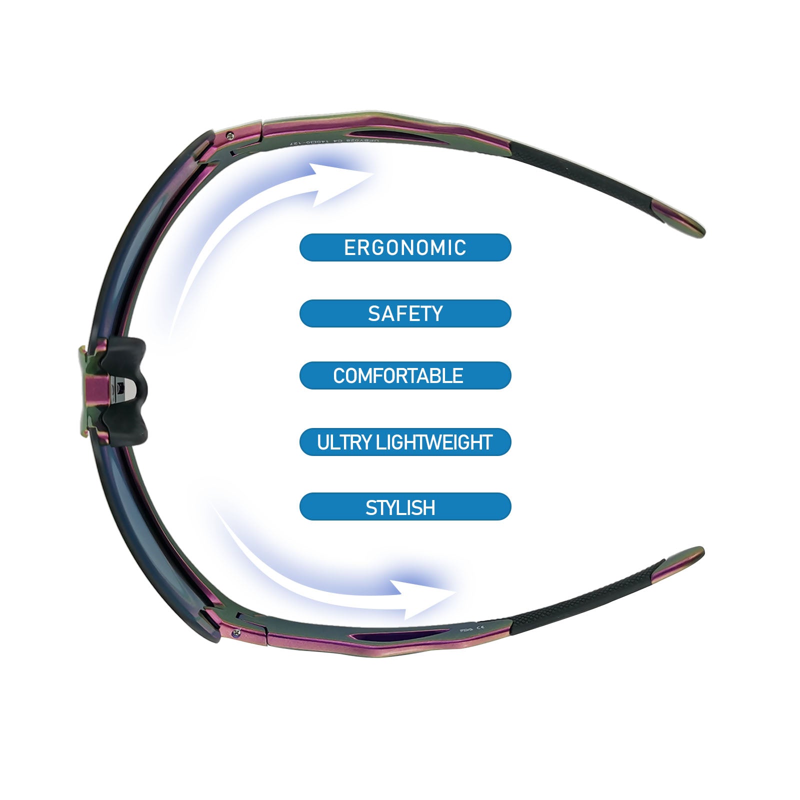 Ergonomically designed, interogated one-piece lens, lightweight, and comfortable to wear. The temples are added with anti-slip silicone foot covers. Use environmentally-friendly rubber nose pads, with no pressure on the nose.