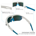 UPANBIKE Bike Cycling Sunglasses Sports Sunglasses Anti-UV400 PC Lens TR90 Unbreakable Frame Unisex Adult Goggle, Glossy White Frame/Blue Lens