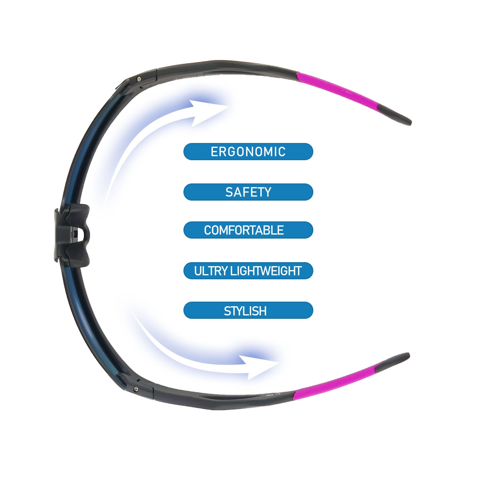 Ergonomically designed, interogated one-piece lens, lightweight, and comfortable to wear. The temples are added with anti-slip silicone foot covers. Use environmentally-friendly rubber nose pads, with no pressure on the nose.